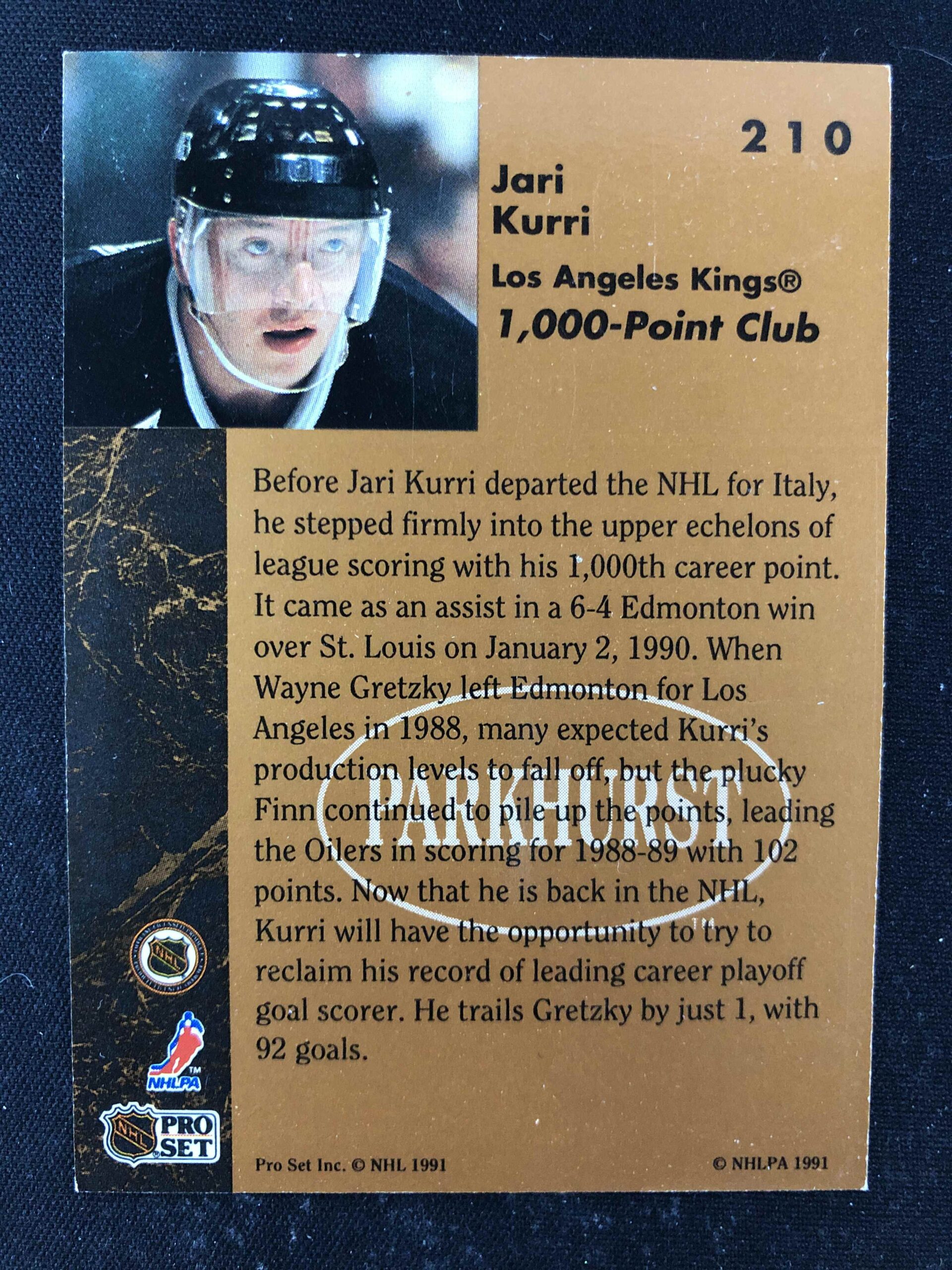 Sběratelská karta 1991/1992 Parkhurst Series 1 Base 210 Jari Kurri