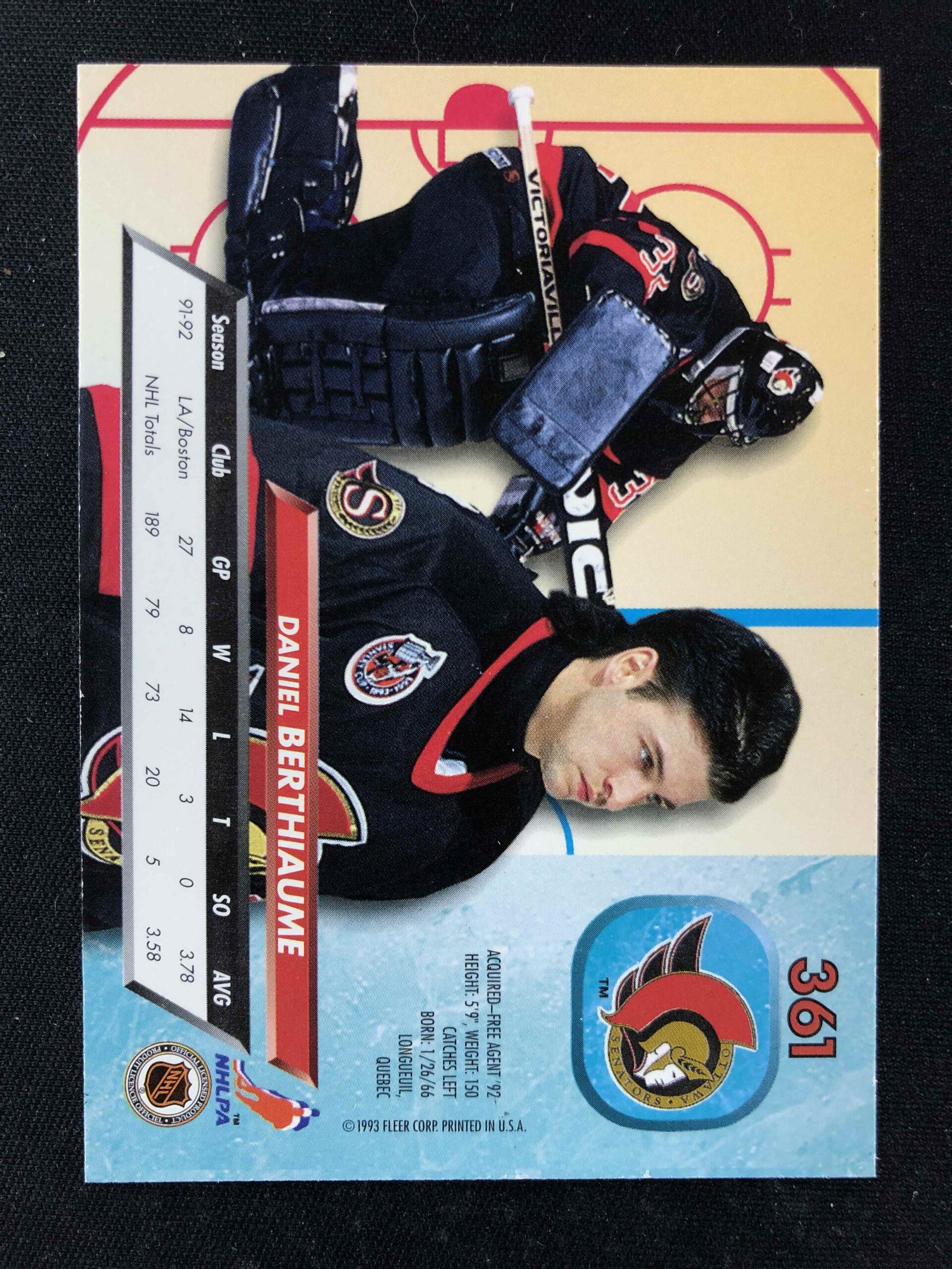Sběratelská karta 1992/1993 Fleer Ultra Base 361 Daniel Berthiaume