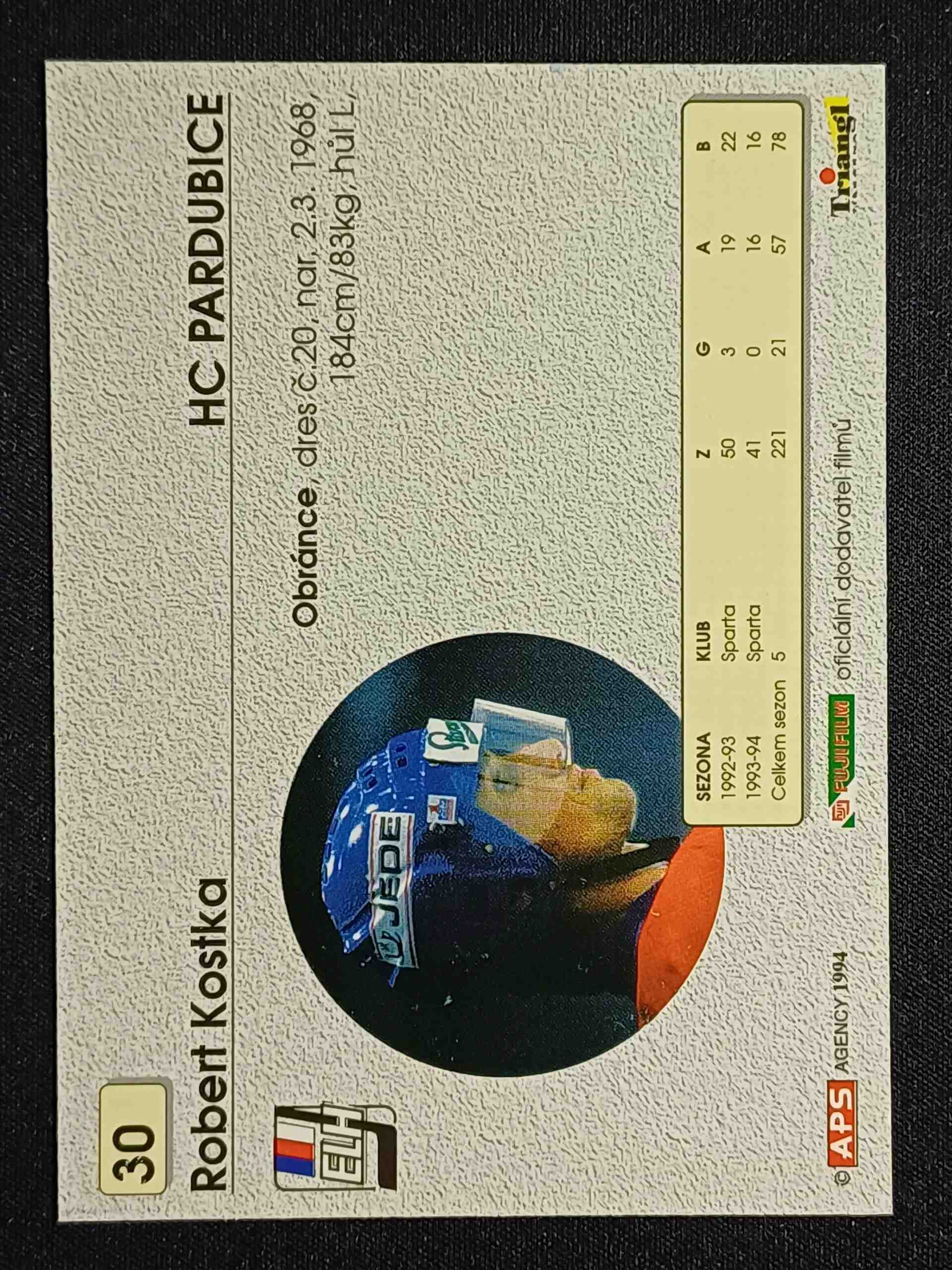 Sběratelská karta 1994/1995 APS Cards Base 30 Robert Kostka