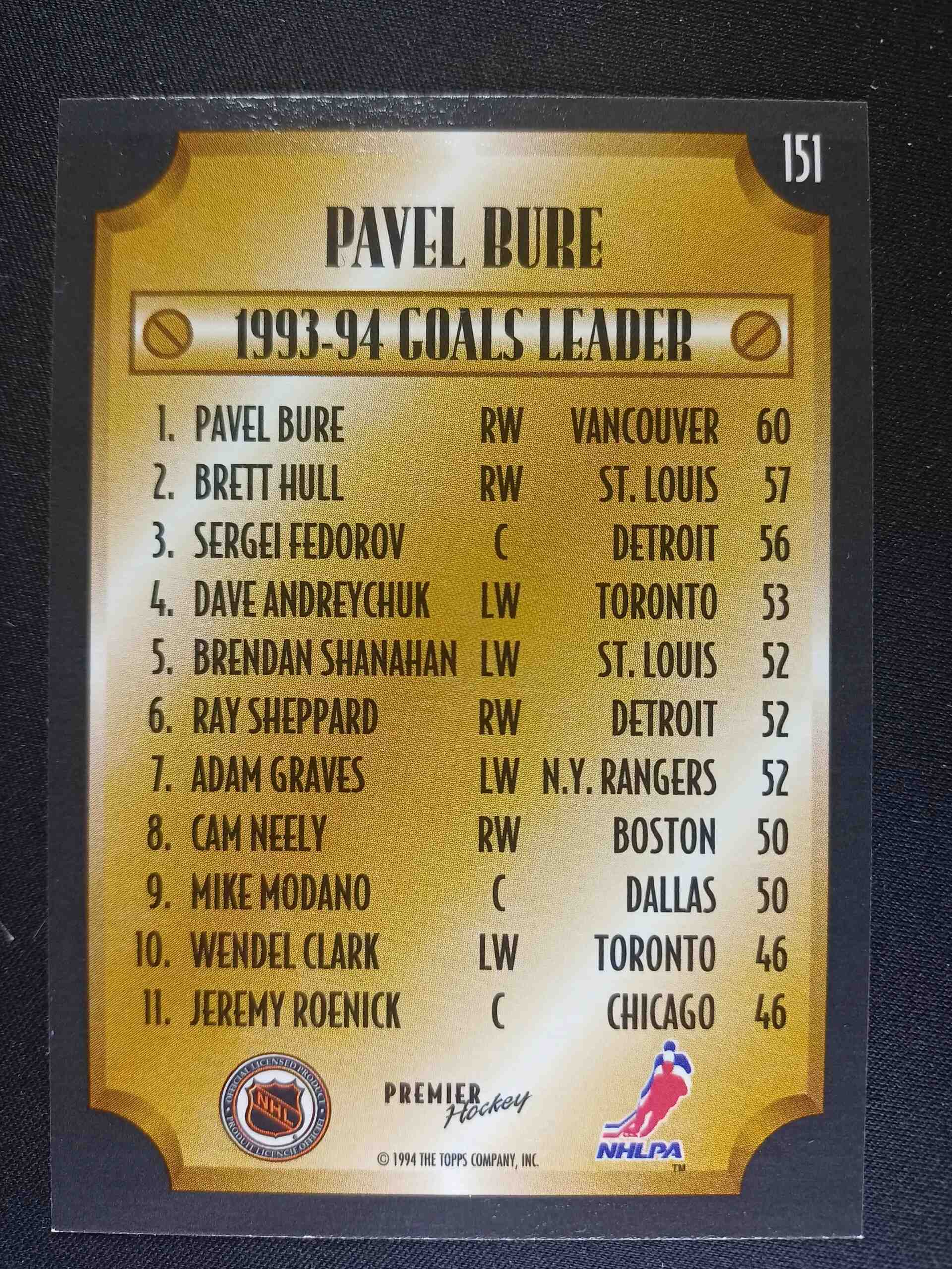 Sběratelská karta 1994/1995 Topps OPC Premier Base 151 Pavel Bure