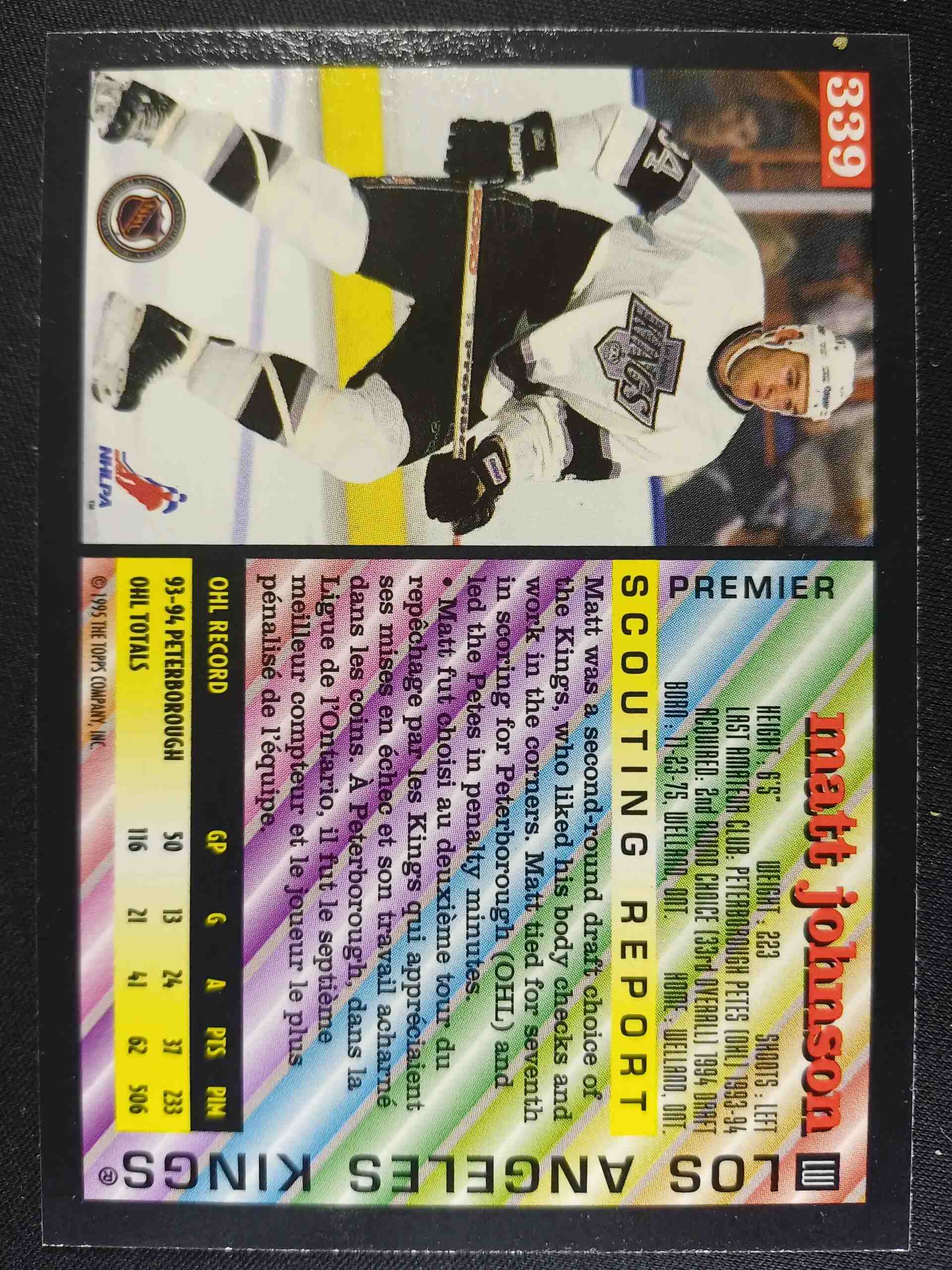 Sběratelská karta 1994/1995 Topps OPC Premier Base 339 Matt Johnson
