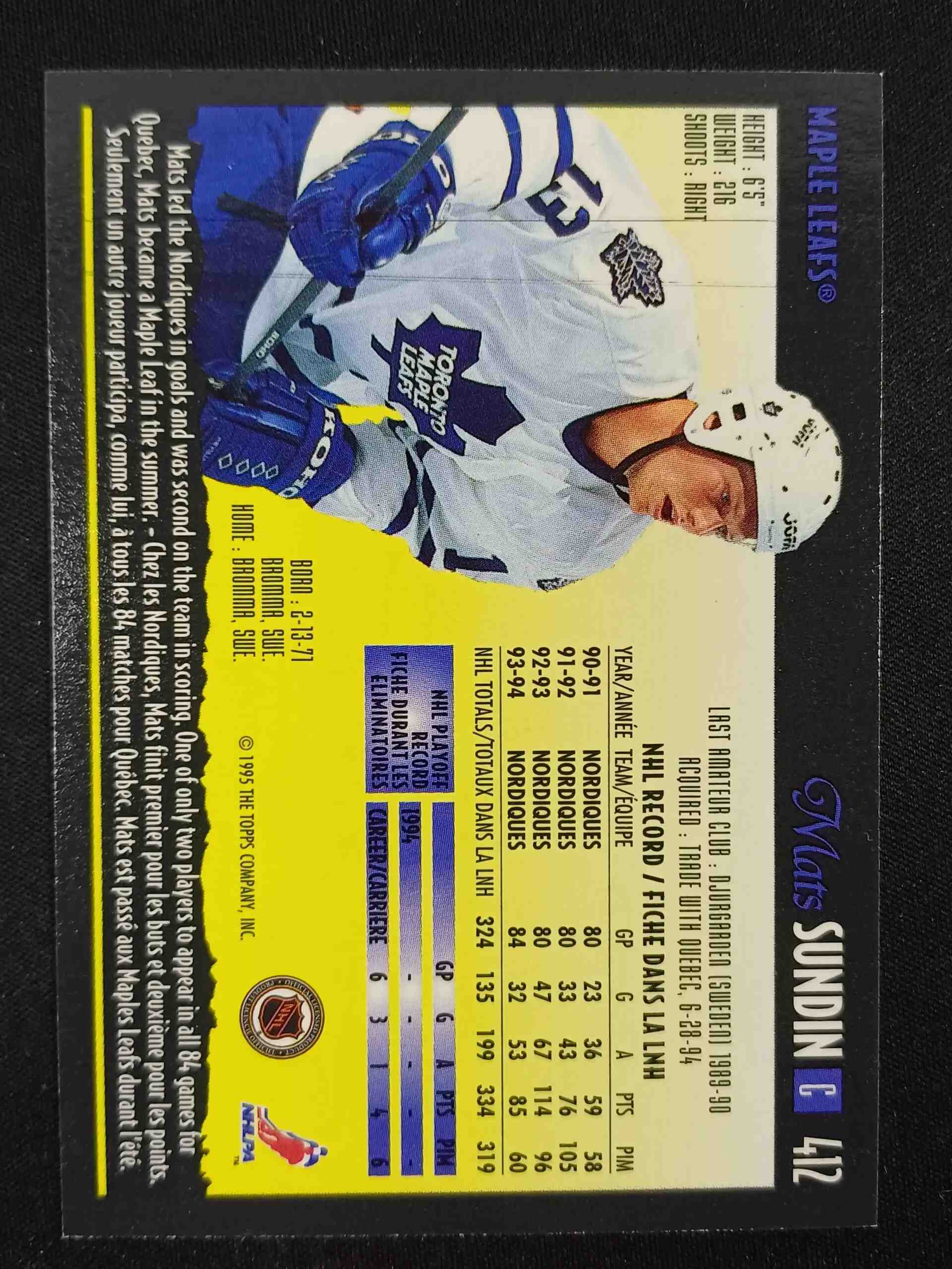 1994/1995 Topps OPC Premier Base 412 Mats Sundin