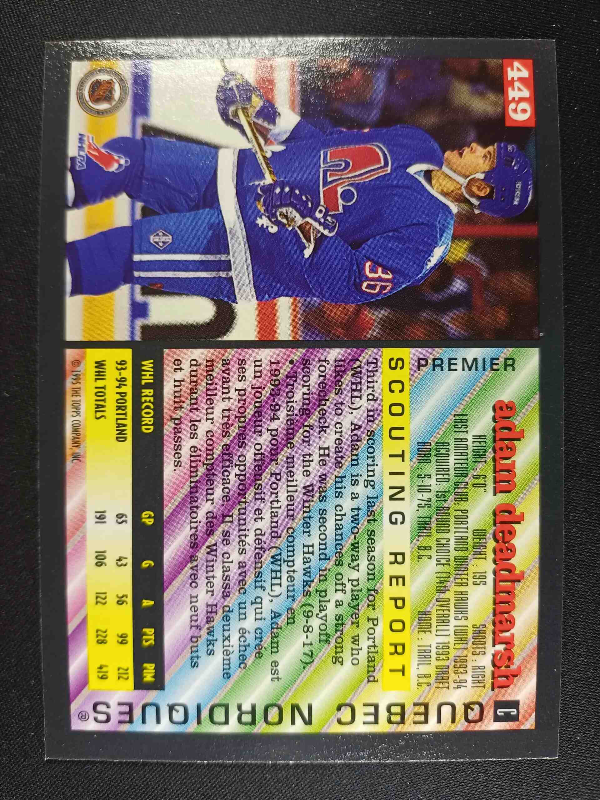 Sběratelská karta 1994/1995 Topps OPC Premier Base 449 Adam Deadmarsh