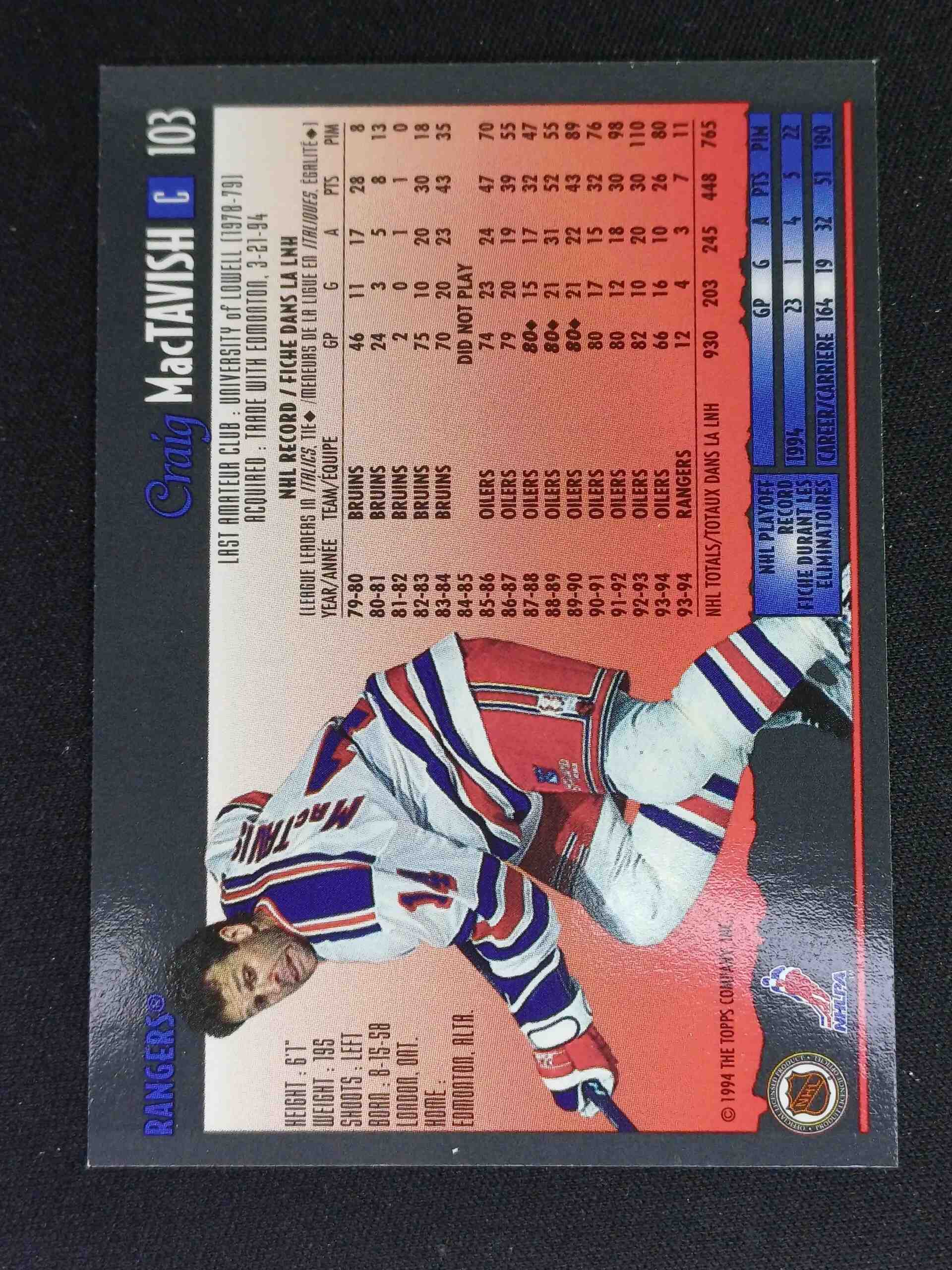 Sběratelská karta 1994/1995 Topps OPC Premier Special Effects 103 Craig MacTavish Paralel