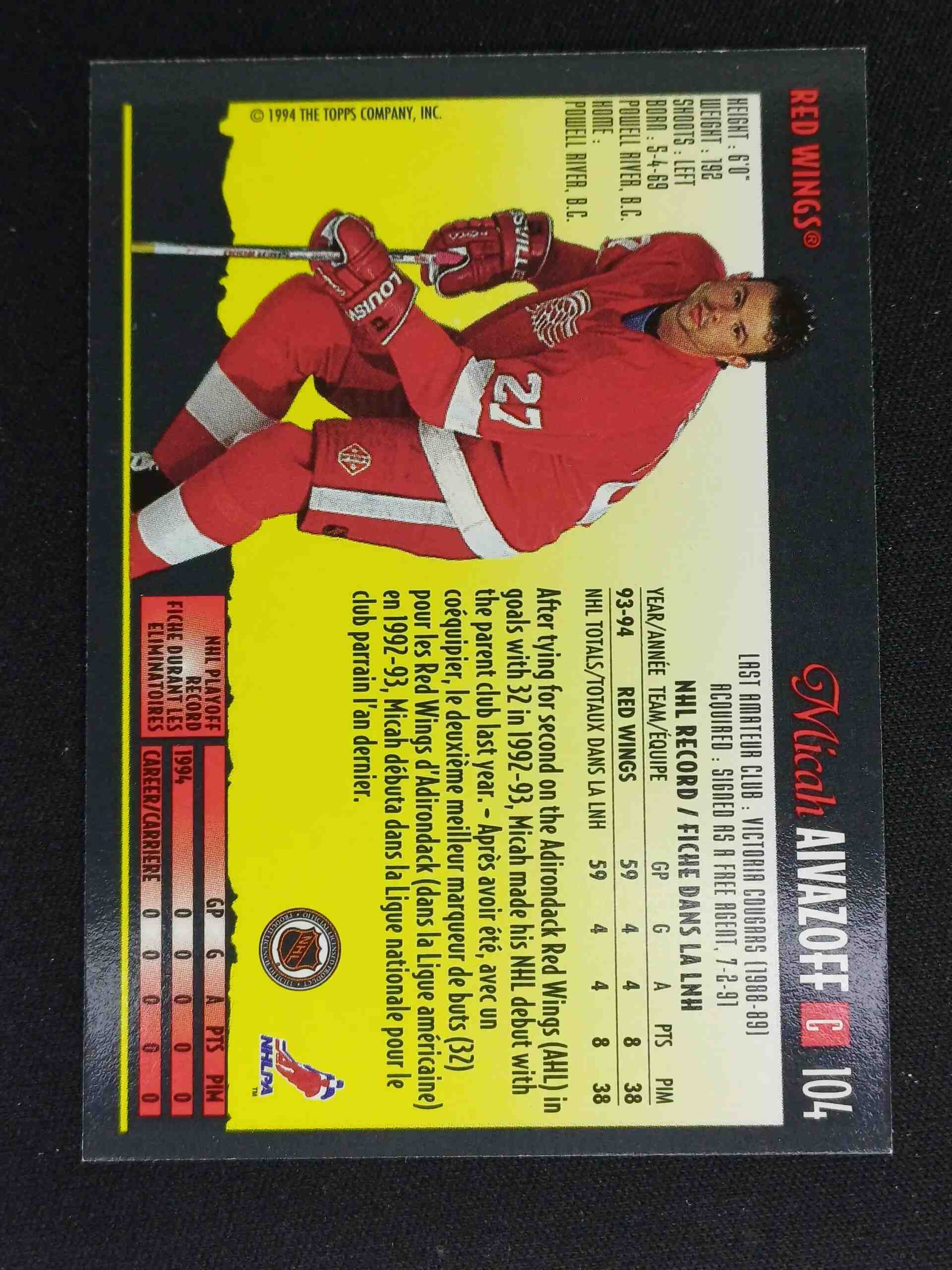 Sběratelská karta 1994/1995 Topps OPC Premier Special Effects 104 Micah Aivazoff Paralel