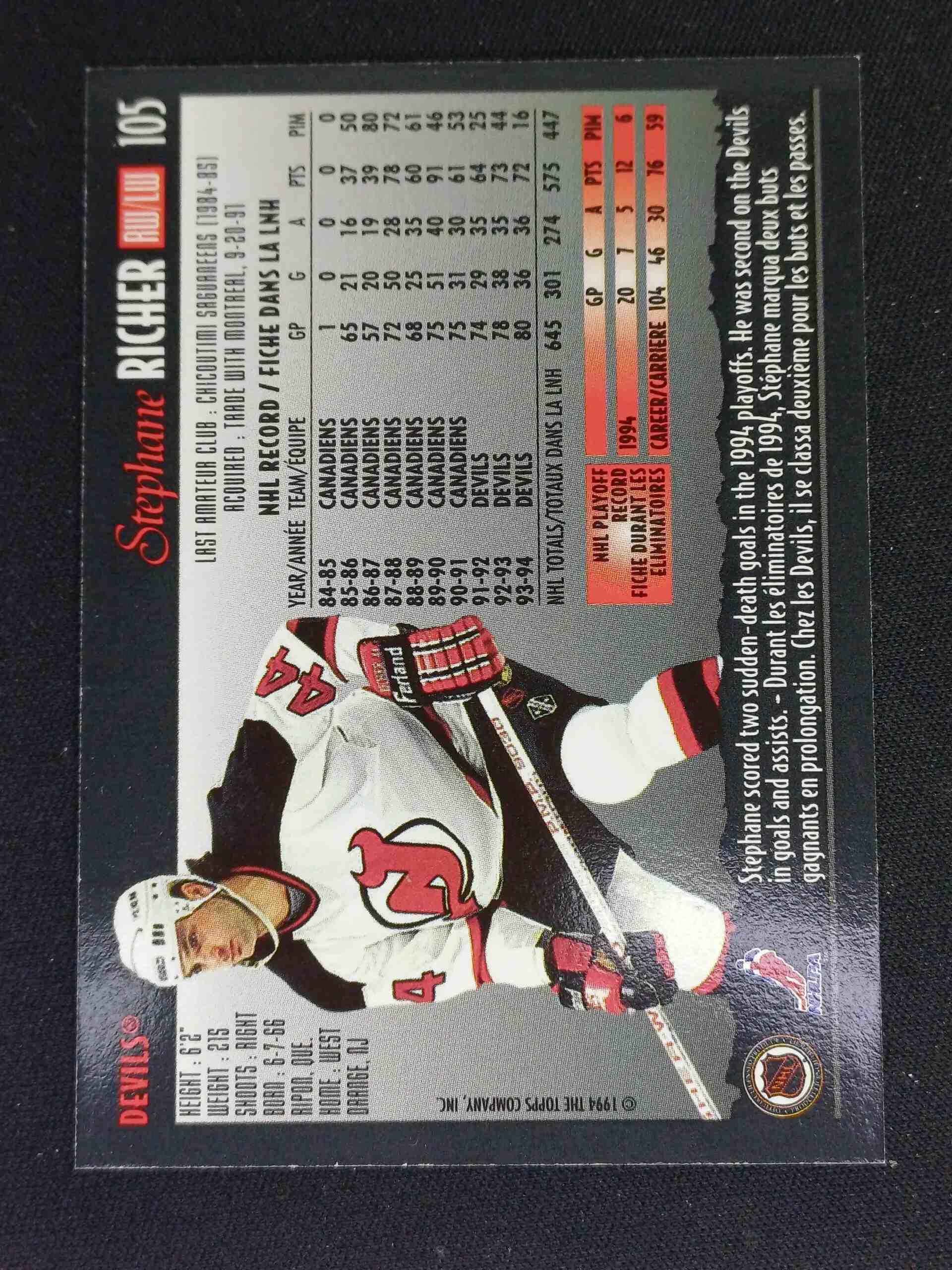 Sběratelská karta 1994/1995 Topps OPC Premier Special Effects 105 Stephane Richer Paralel