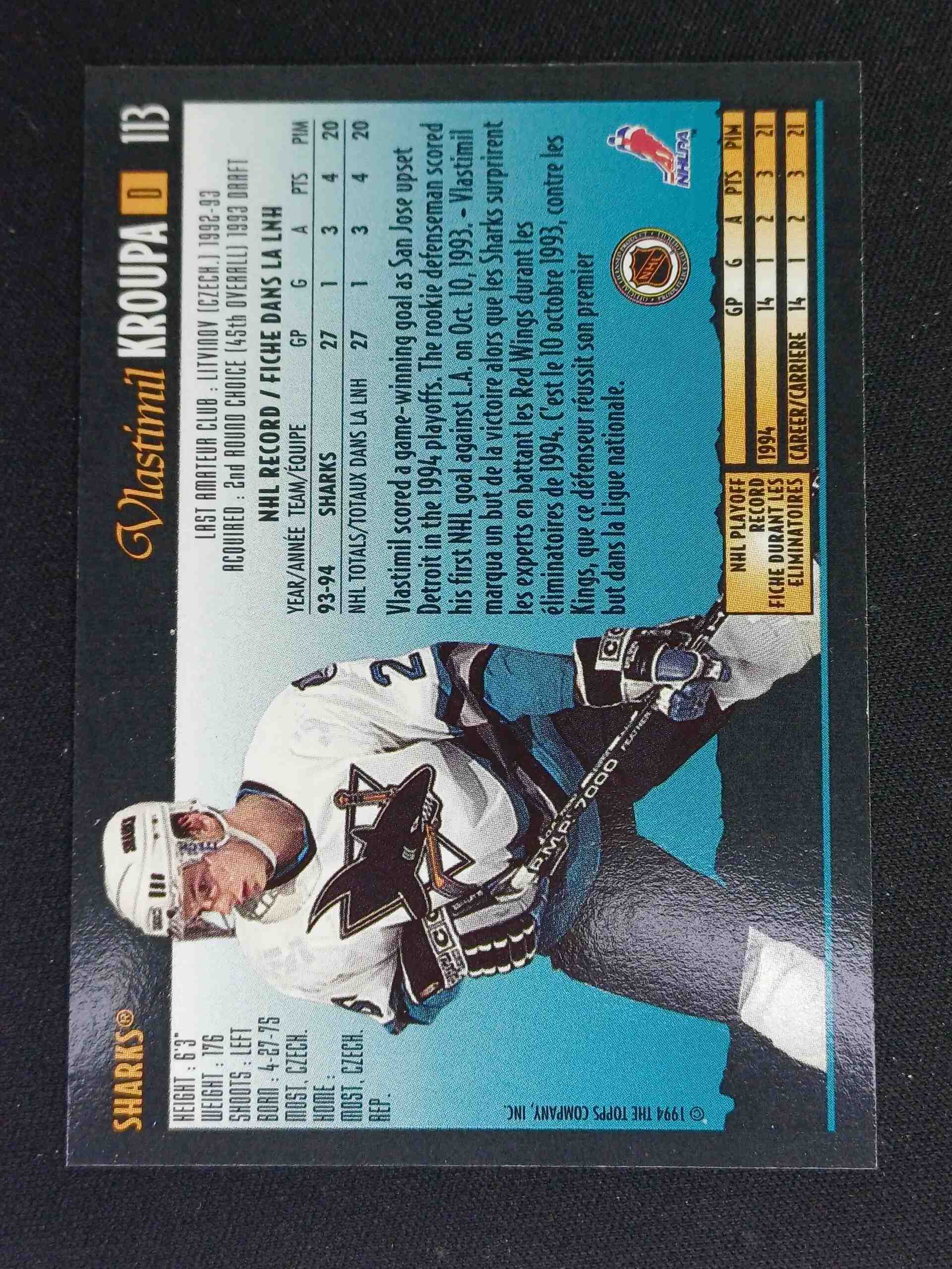 Sběratelská karta 1994/1995 Topps OPC Premier Special Effects 113 Vlastimil Kroupa Paralel