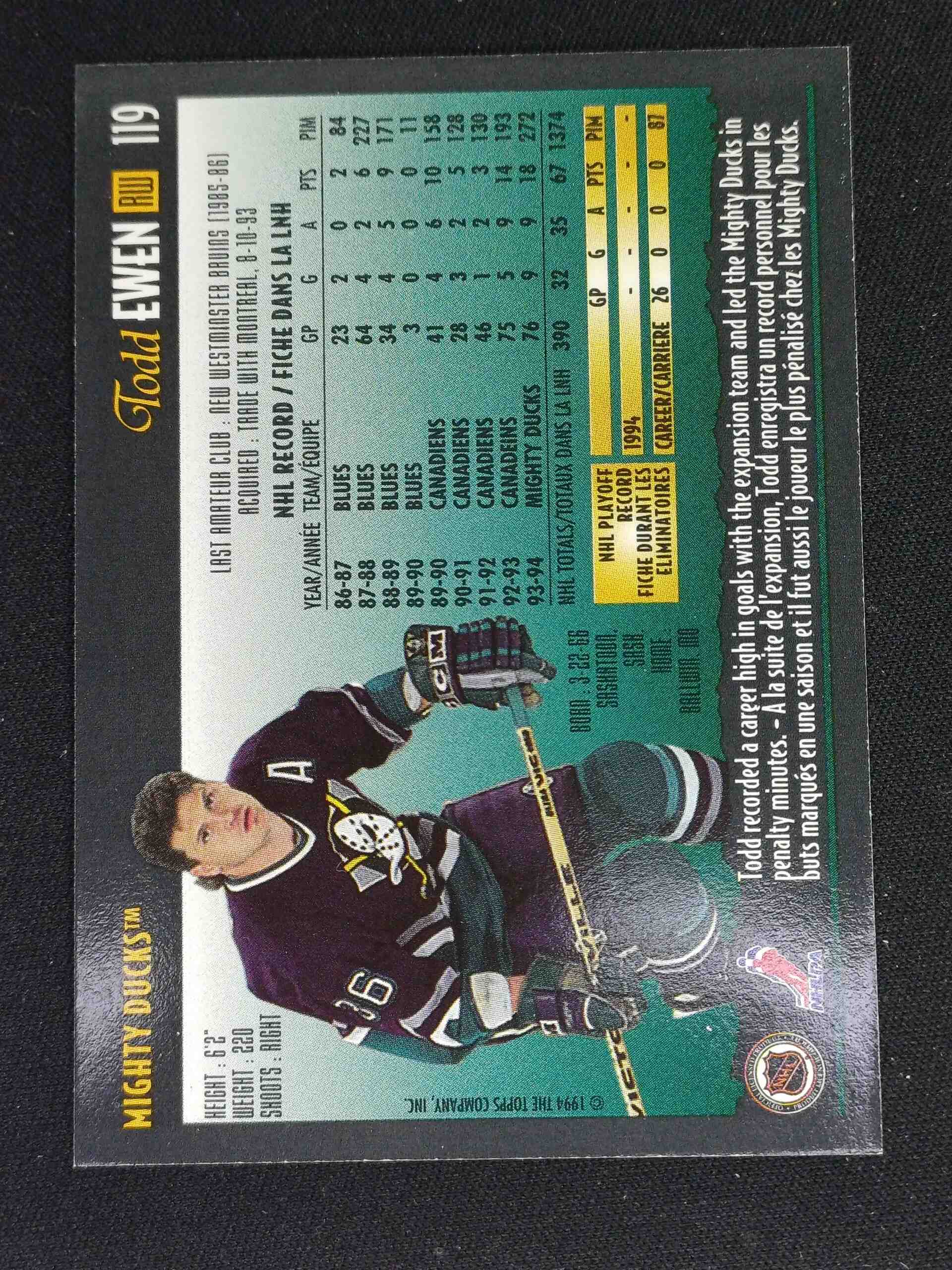 Sběratelská karta 1994/1995 Topps OPC Premier Special Effects 119 Todd Ewen Paralel