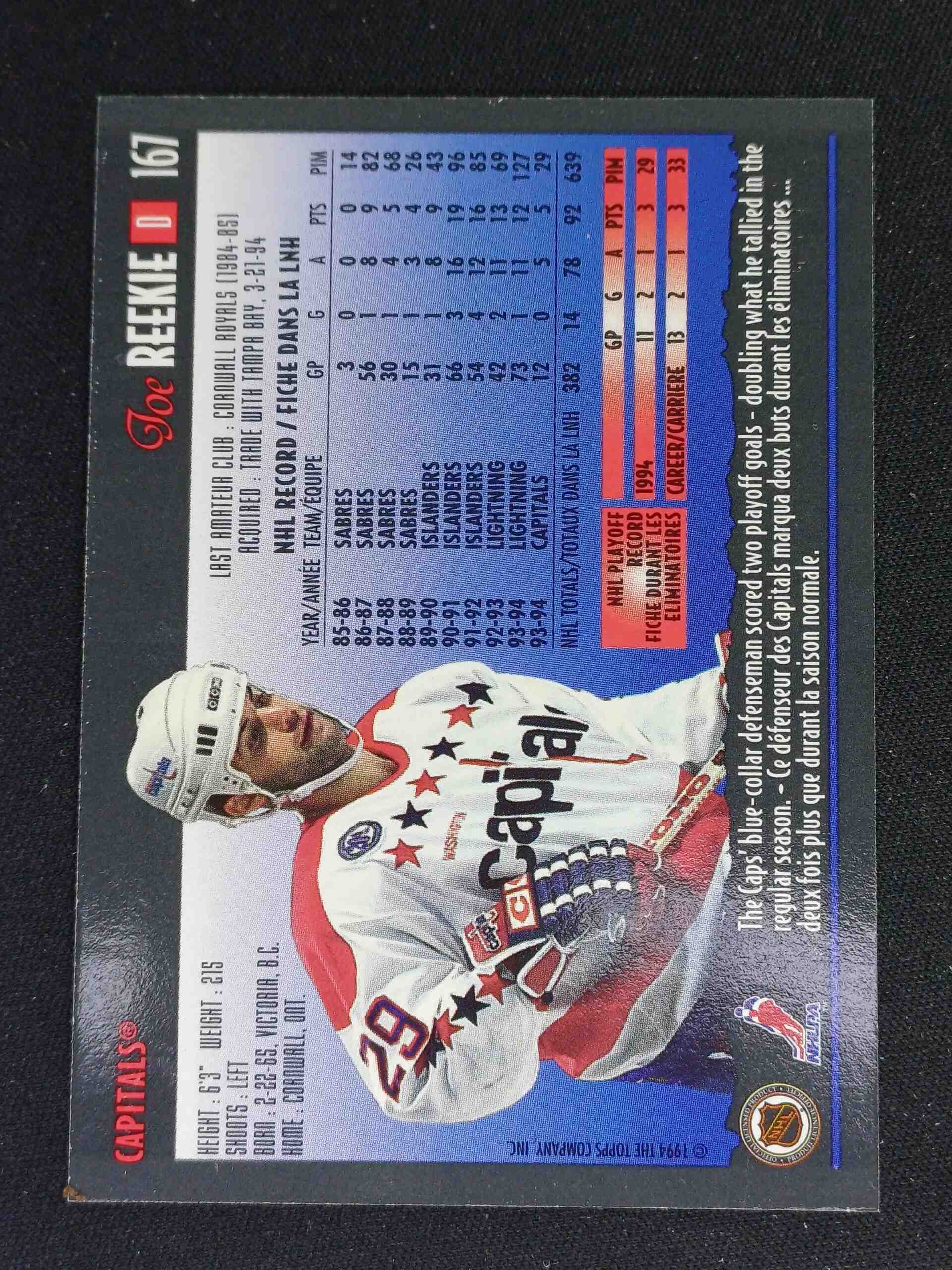 Sběratelská karta 1994/1995 Topps OPC Premier Special Effects 167 Joe Reekie Paralel