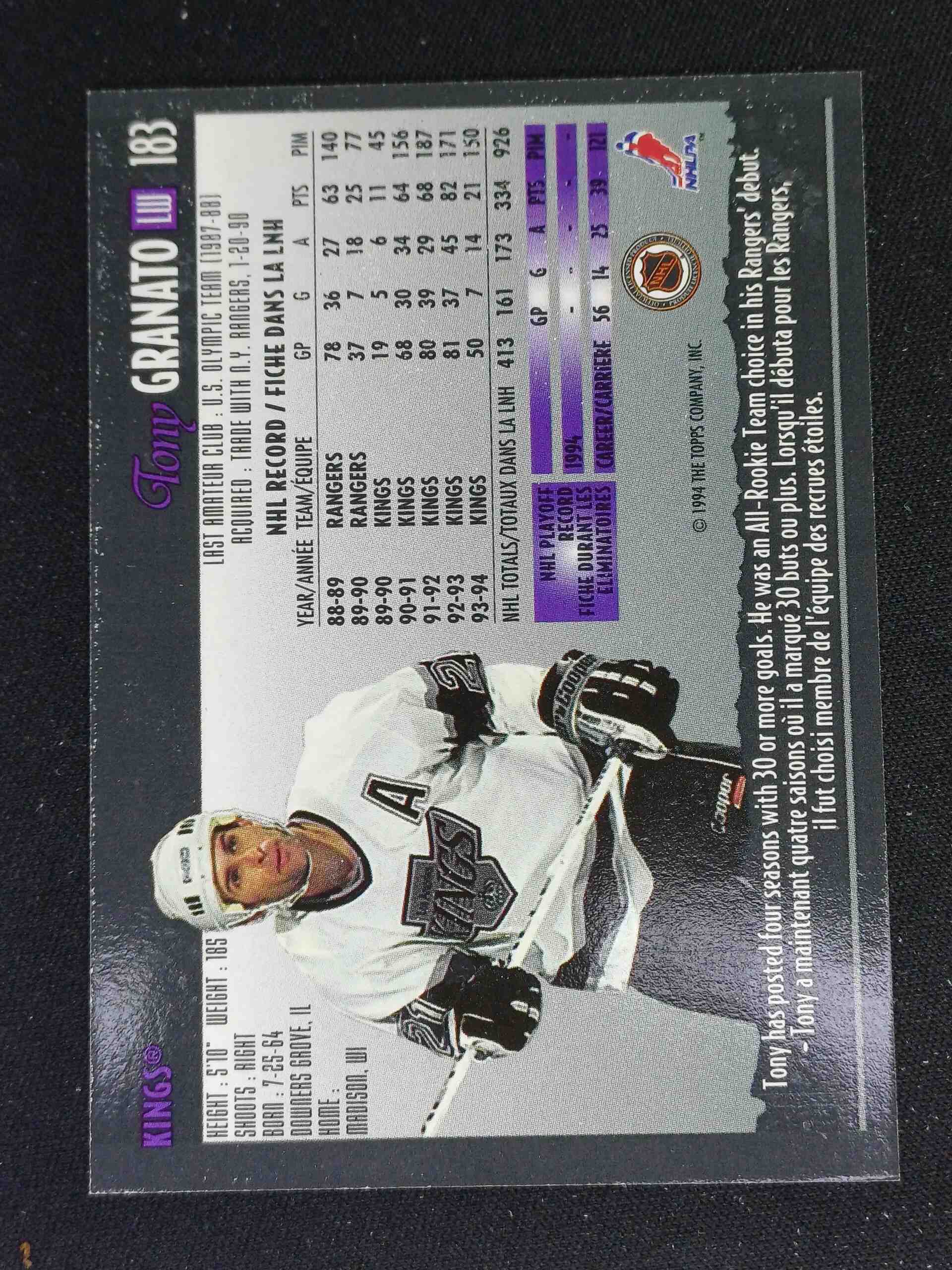 Sběratelská karta 1994/1995 Topps OPC Premier Special Effects 183 Tony Granato Paralel