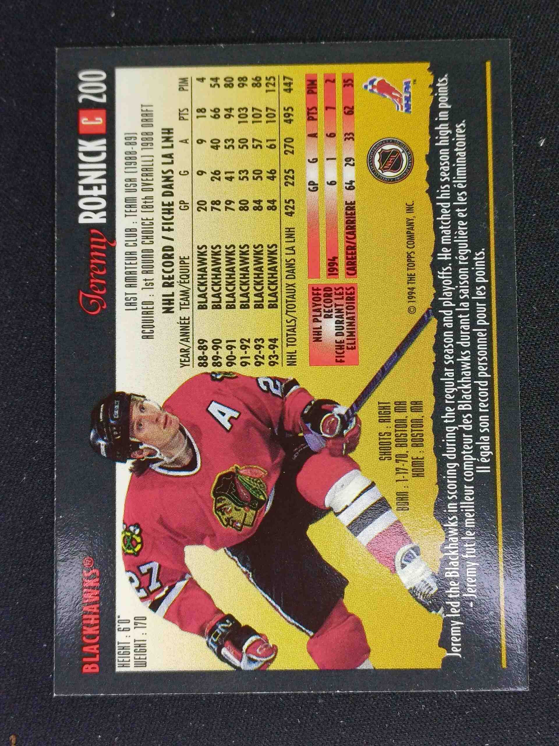 Sběratelská karta 1994/1995 Topps OPC Premier Special Effects 200 Jeremy Roenick Paralel