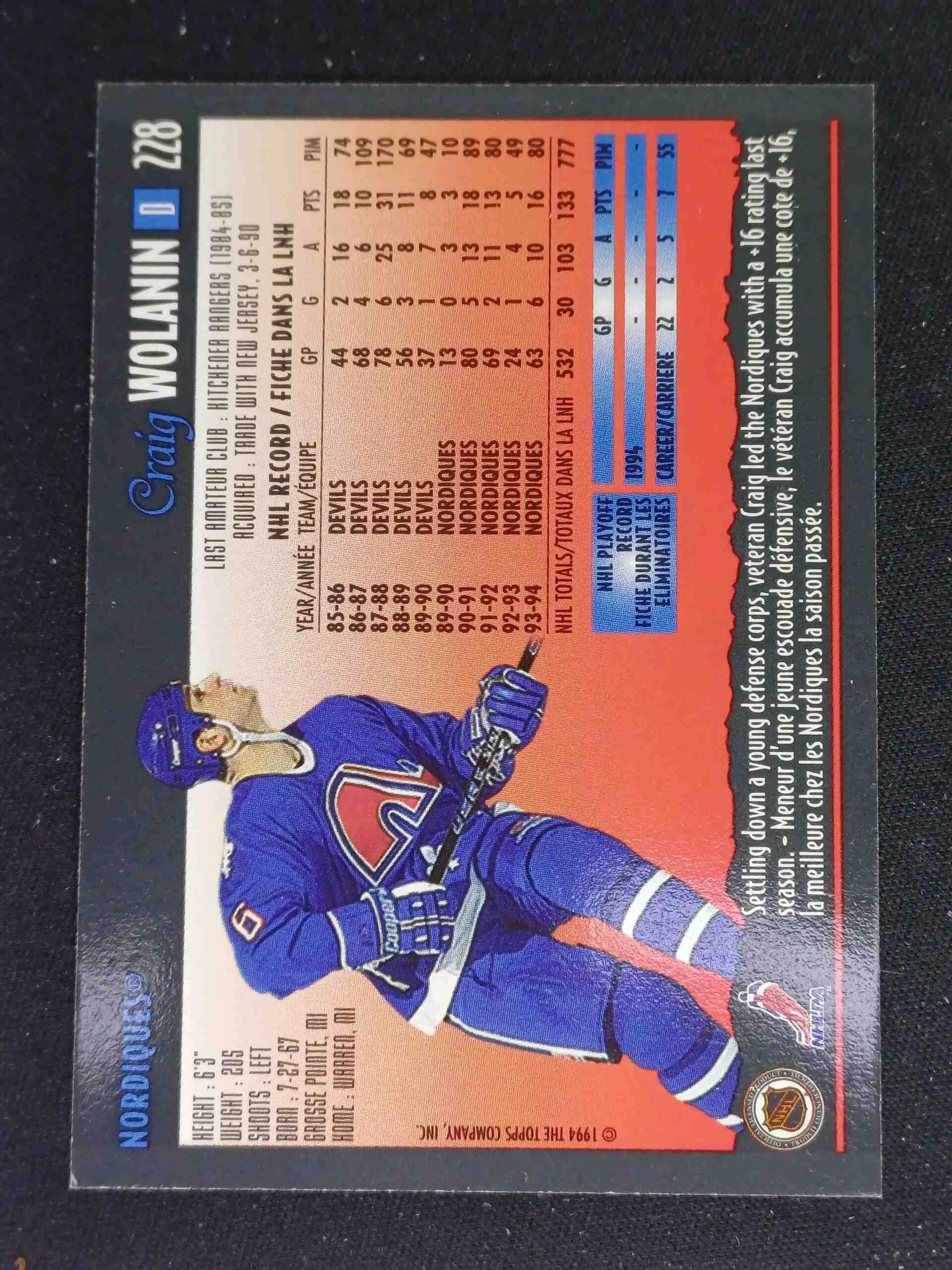 Sběratelská karta 1994/1995 Topps OPC Premier Special Effects 228 Craig Wolanin Paralel