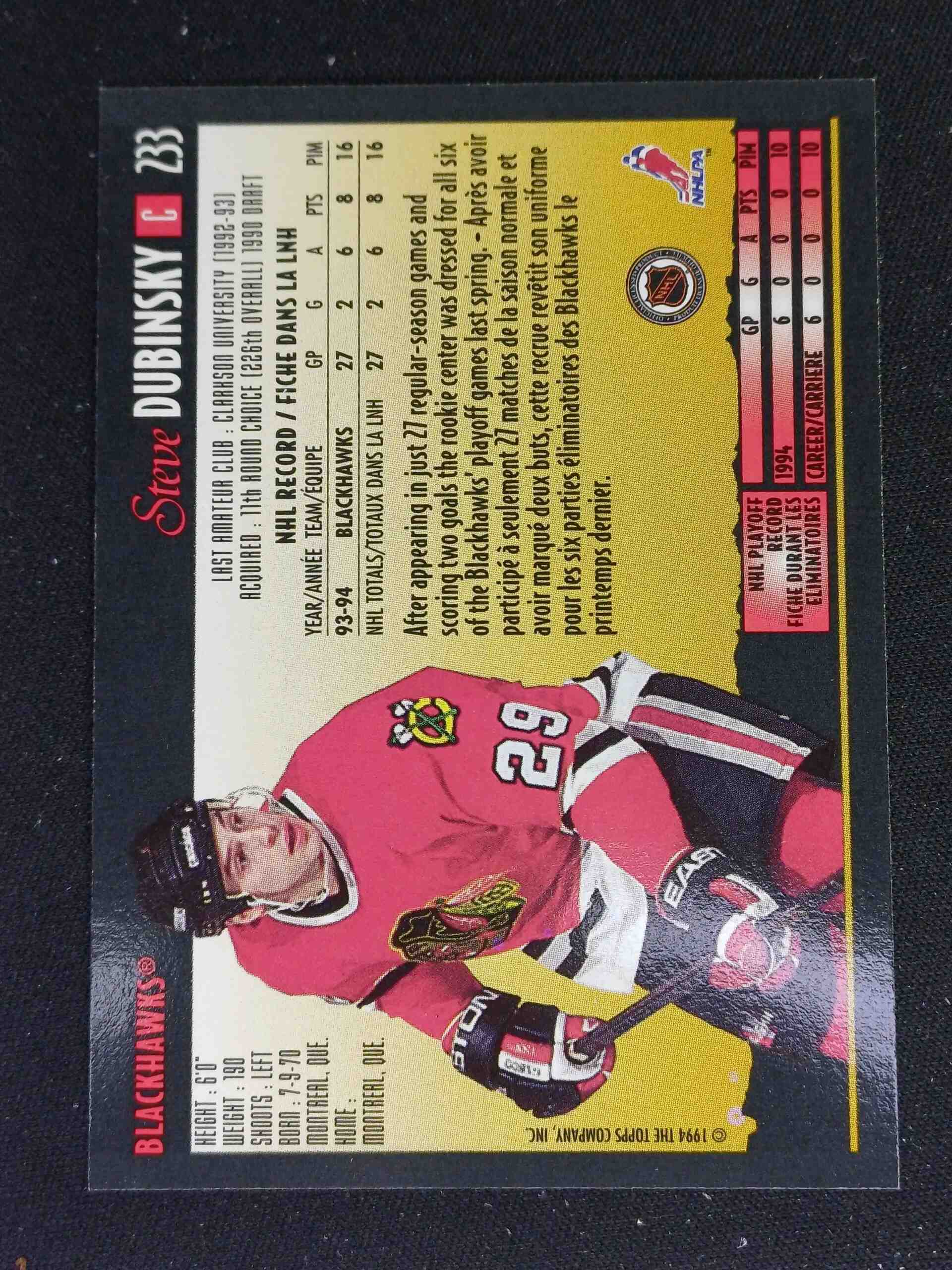 Sběratelská karta 1994/1995 Topps OPC Premier Special Effects 233 Steve Dubinsky Paralel