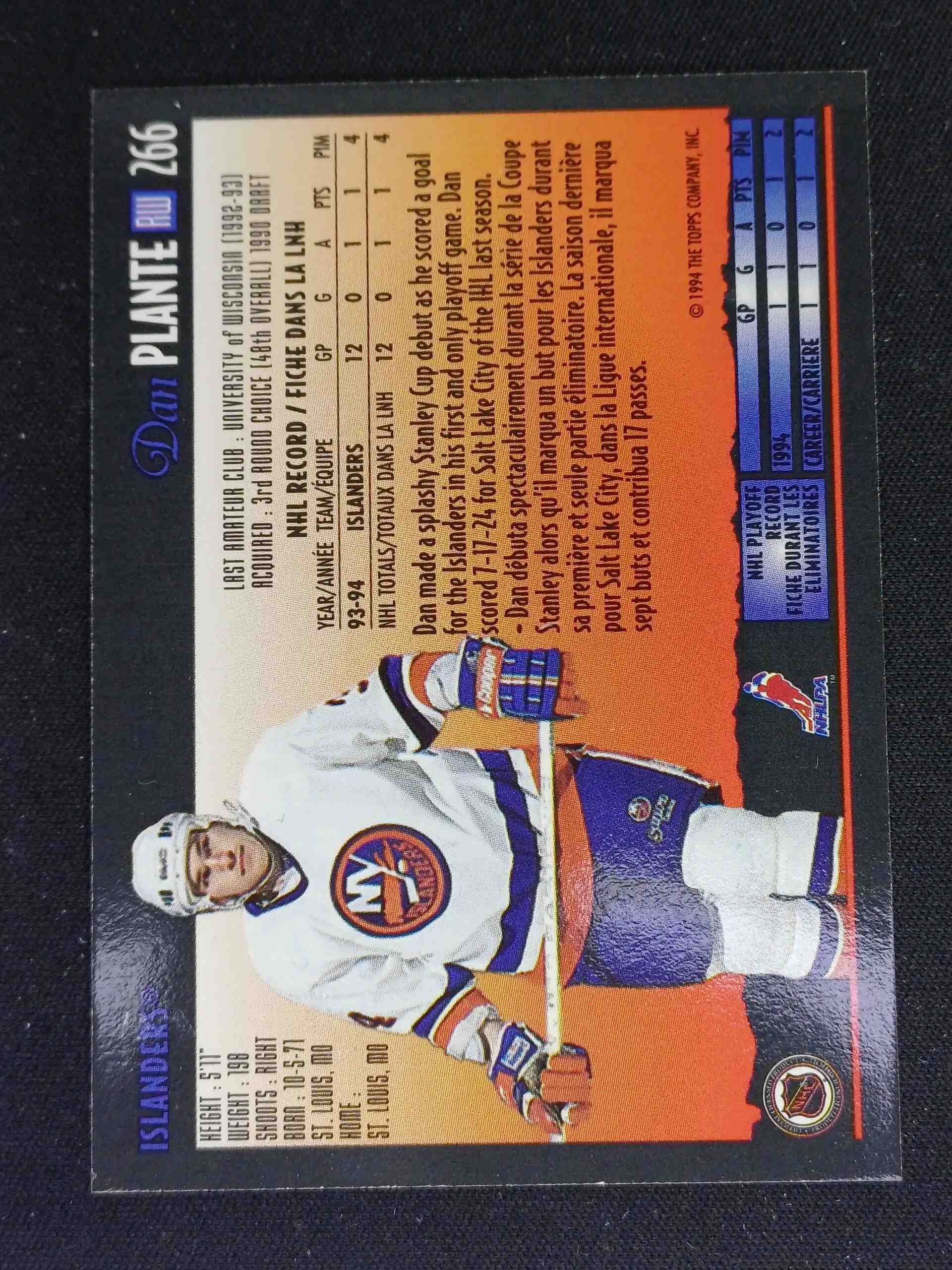 Sběratelská karta 1994/1995 Topps OPC Premier Special Effects 266 Dan Plante Paralel