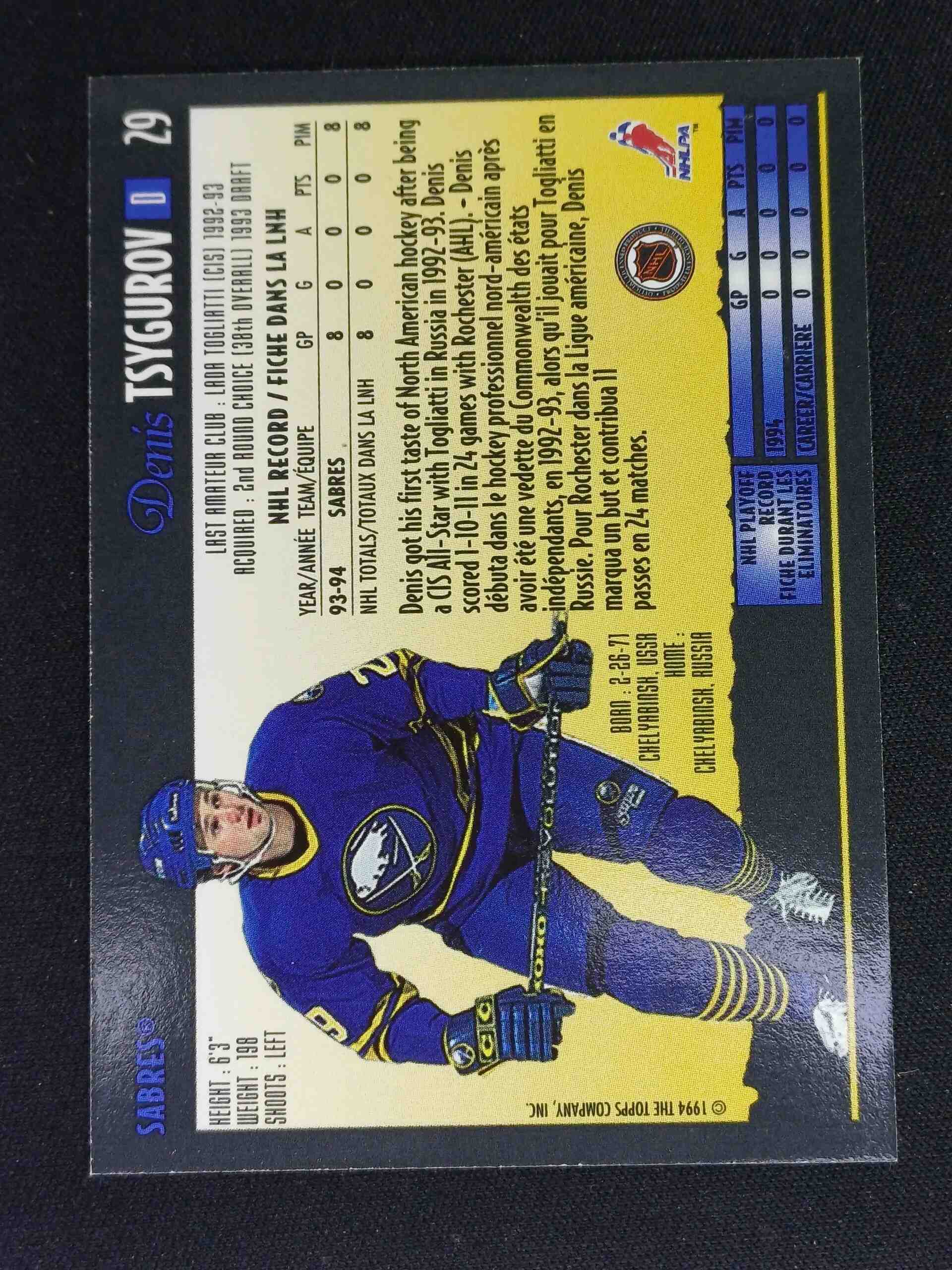 Sběratelská karta 1994/1995 Topps OPC Premier Special Effects 29 Denis Tsygurov Paralel