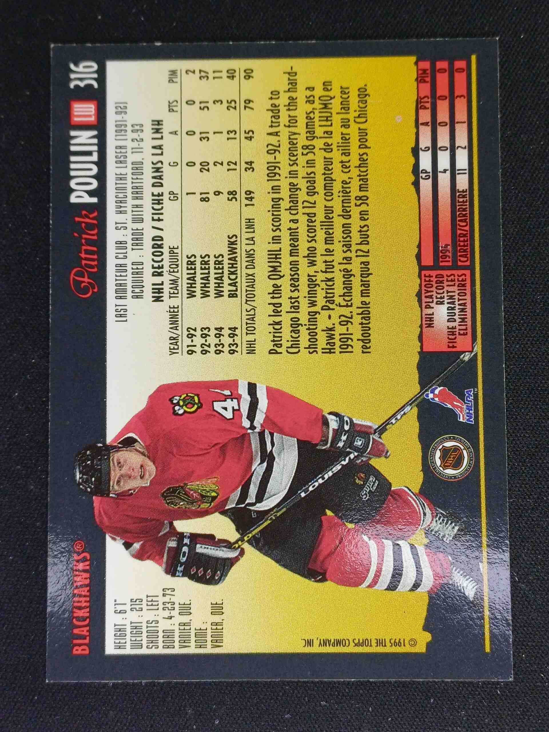 Sběratelská karta 1994/1995 Topps OPC Premier Special Effects 316 Patrick Poulin Paralel