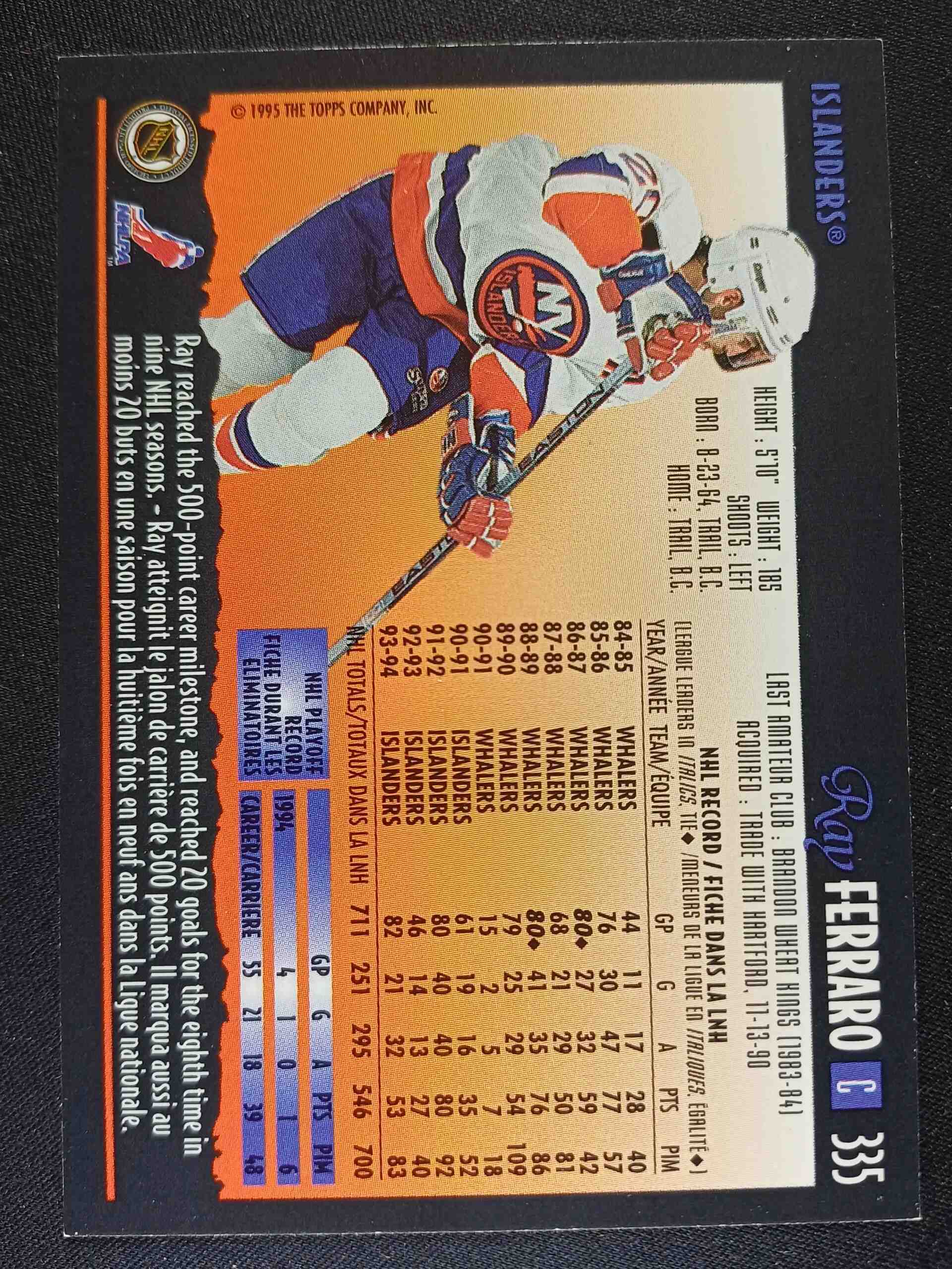 Sběratelská karta 1994/1995 Topps OPC Premier Special Effects 335 Ray Ferraro Paralel