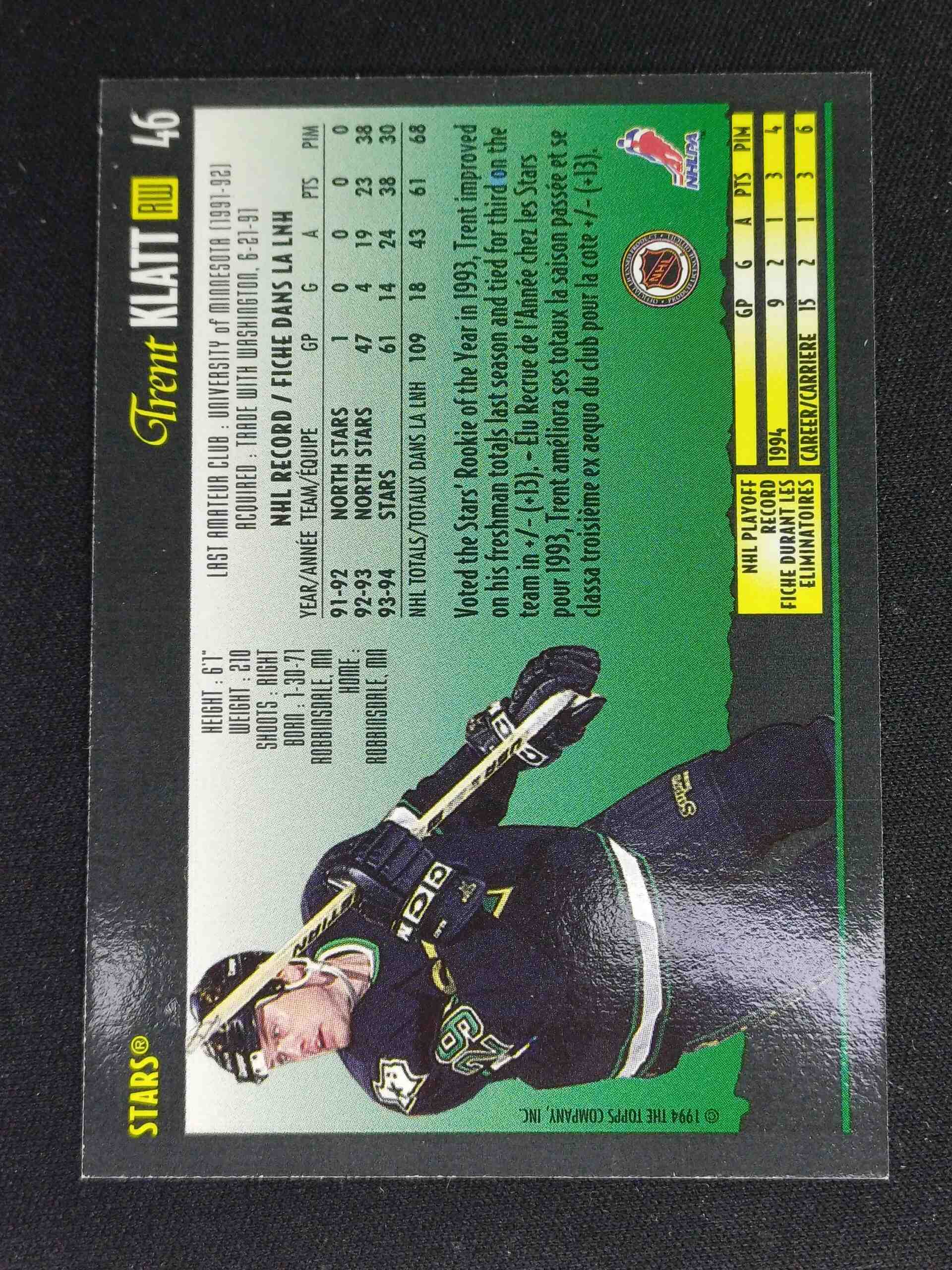 Sběratelská karta 1994/1995 Topps OPC Premier Special Effects 46 Trent Klatt Paralel