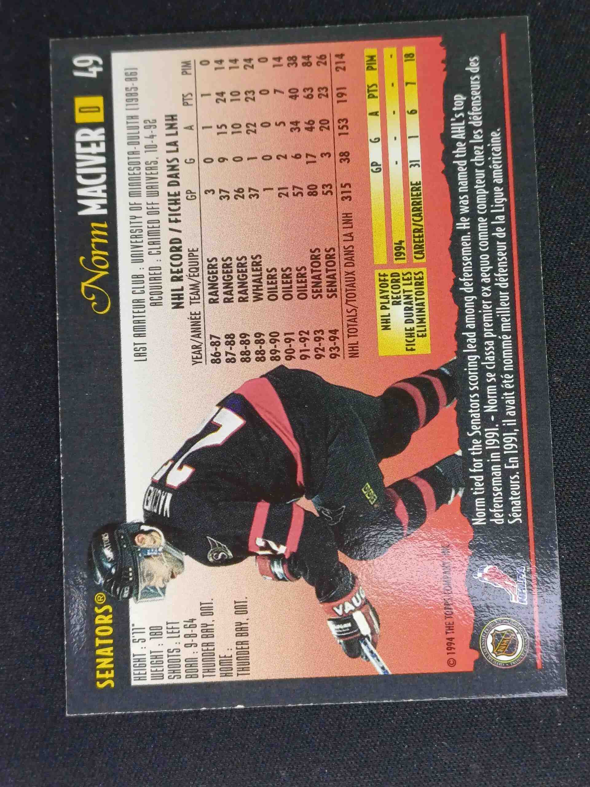 Sběratelská karta 1994/1995 Topps OPC Premier Special Effects 49 Norm Maciver Paralel