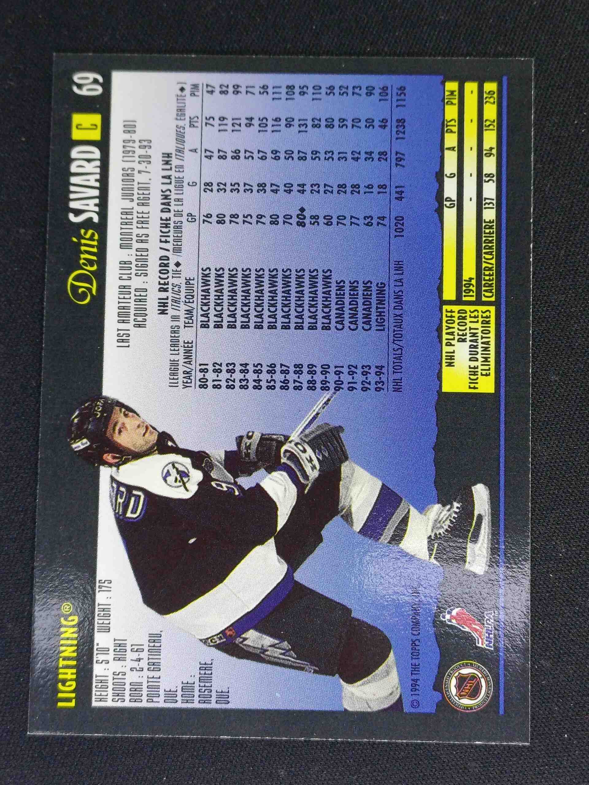 Sběratelská karta 1994/1995 Topps OPC Premier Special Effects 69 Denis Savard Paralel