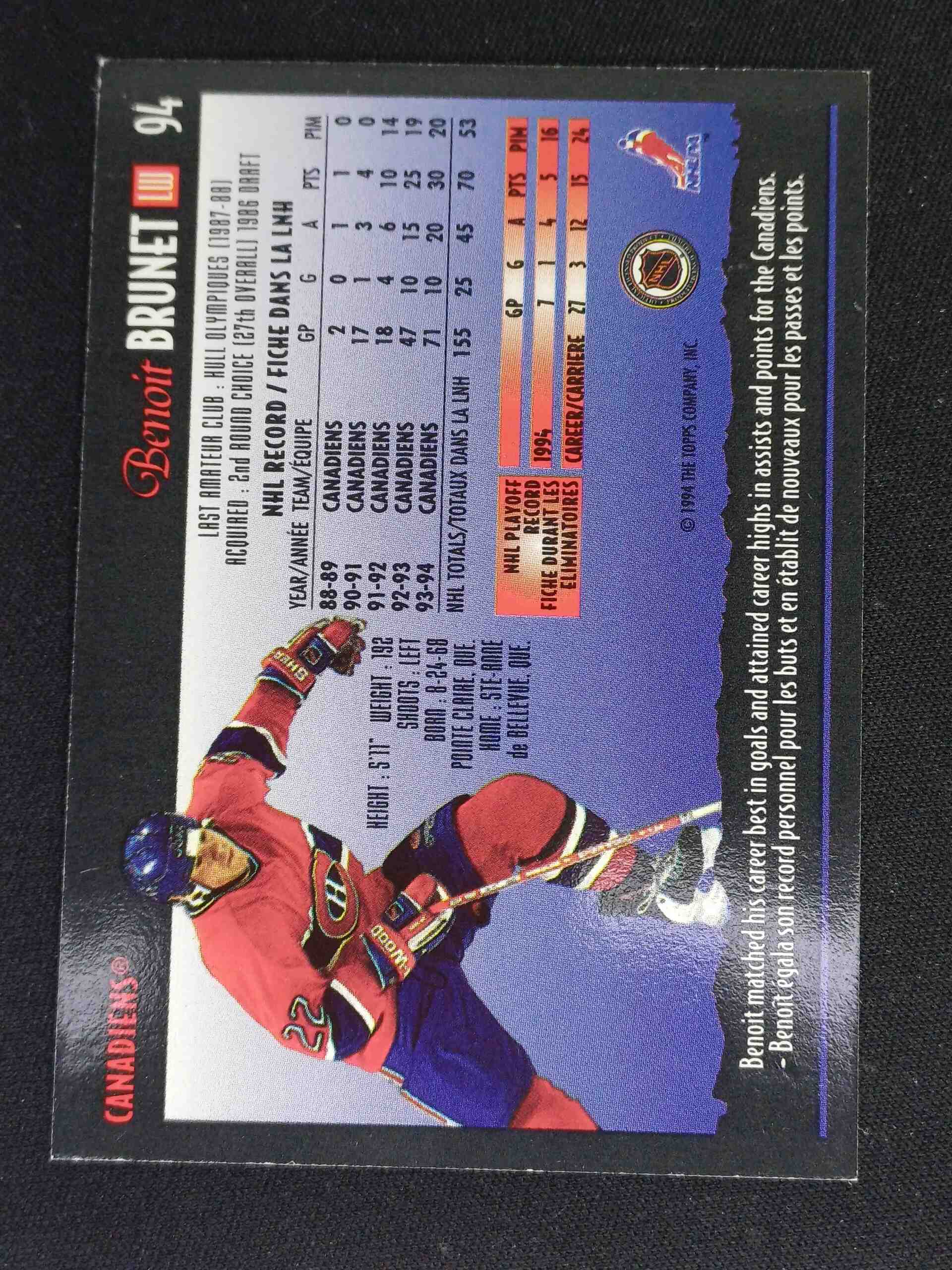 Sběratelská karta 1994/1995 Topps OPC Premier Special Effects 94 Benoit Brunet Paralel