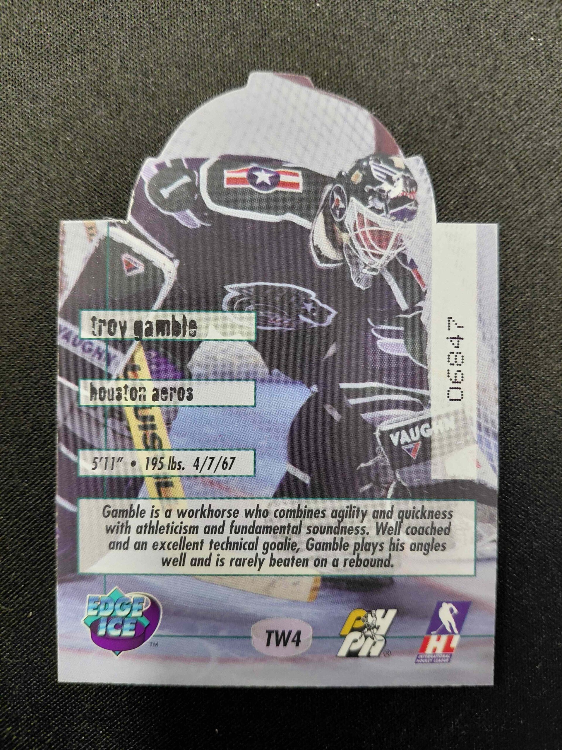 Sběratelská karta 1995/1996 Collectors Edge Edge Ice The Wall TW4 Troy Gamble Inzert