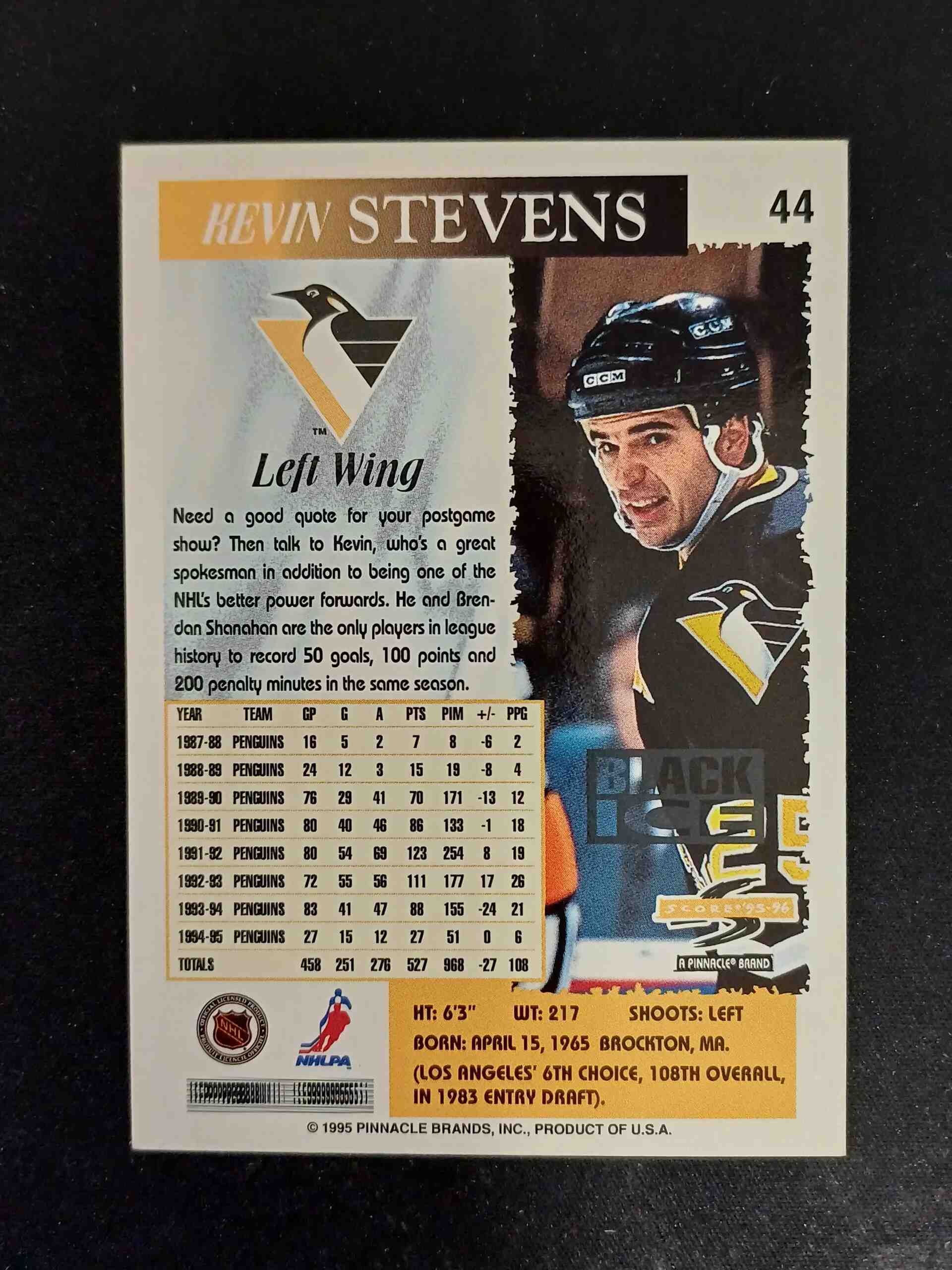 Sběratelská karta 1995/1996 Pinnacle Score Black Ice 44 Kevin Stevens Paralel
