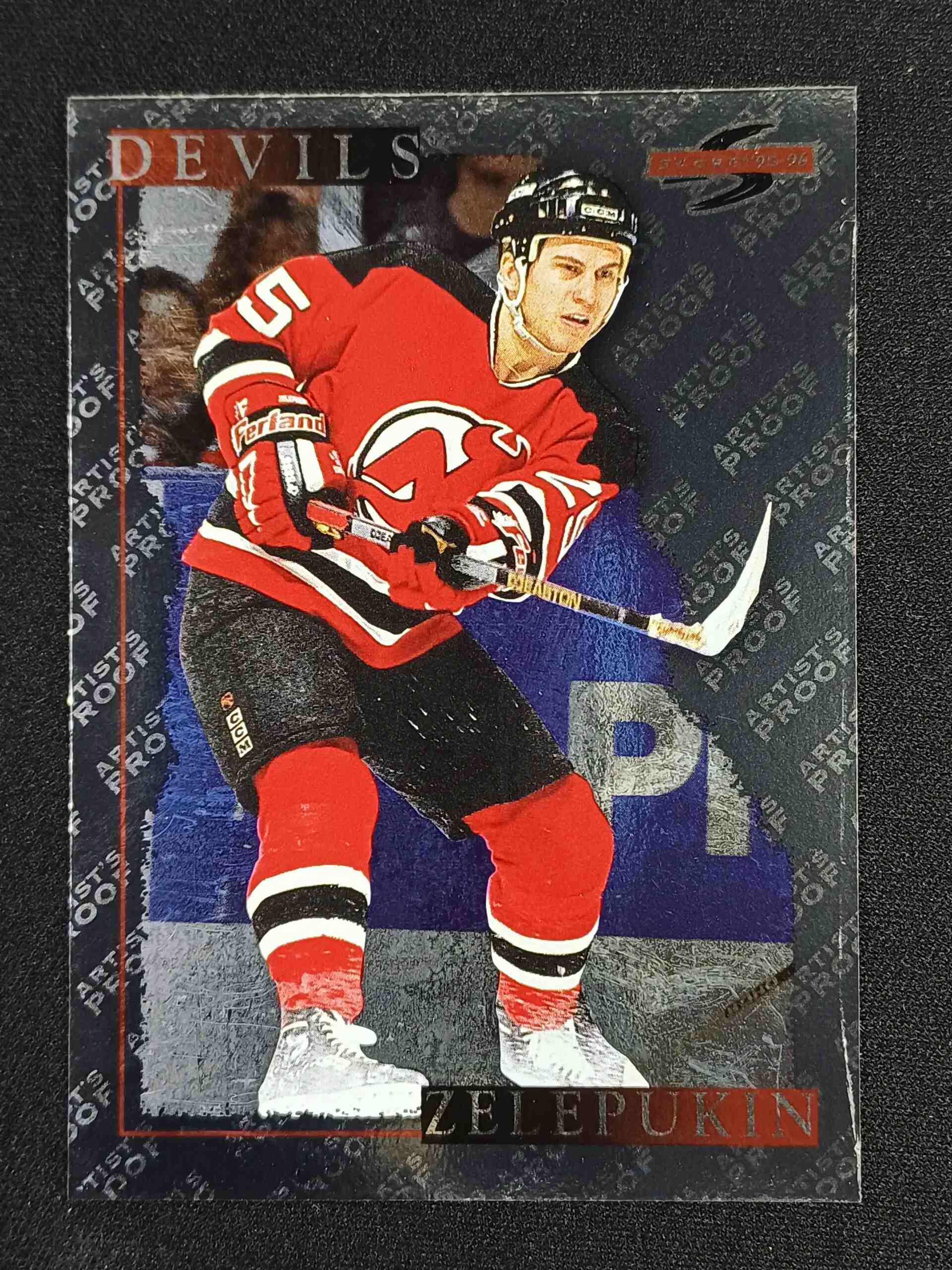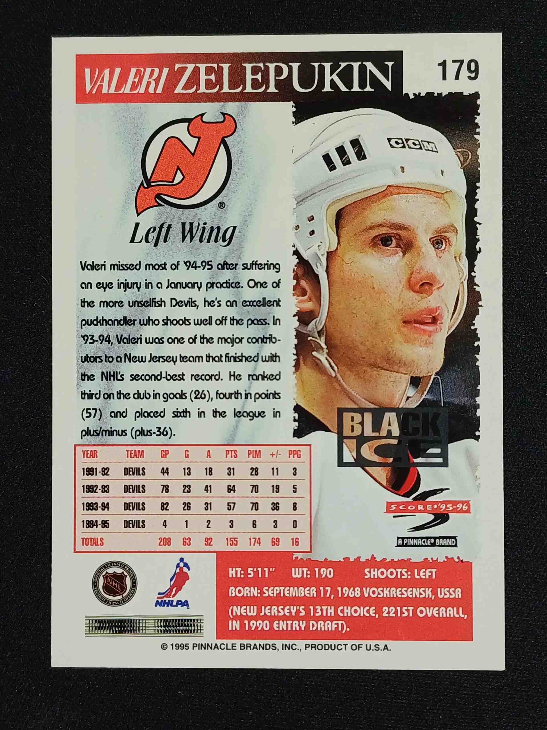 Sběratelská karta 1995/1996 Pinnacle Score Black Ice Artist Proof 179 Valeri Zelepukin Paralel
