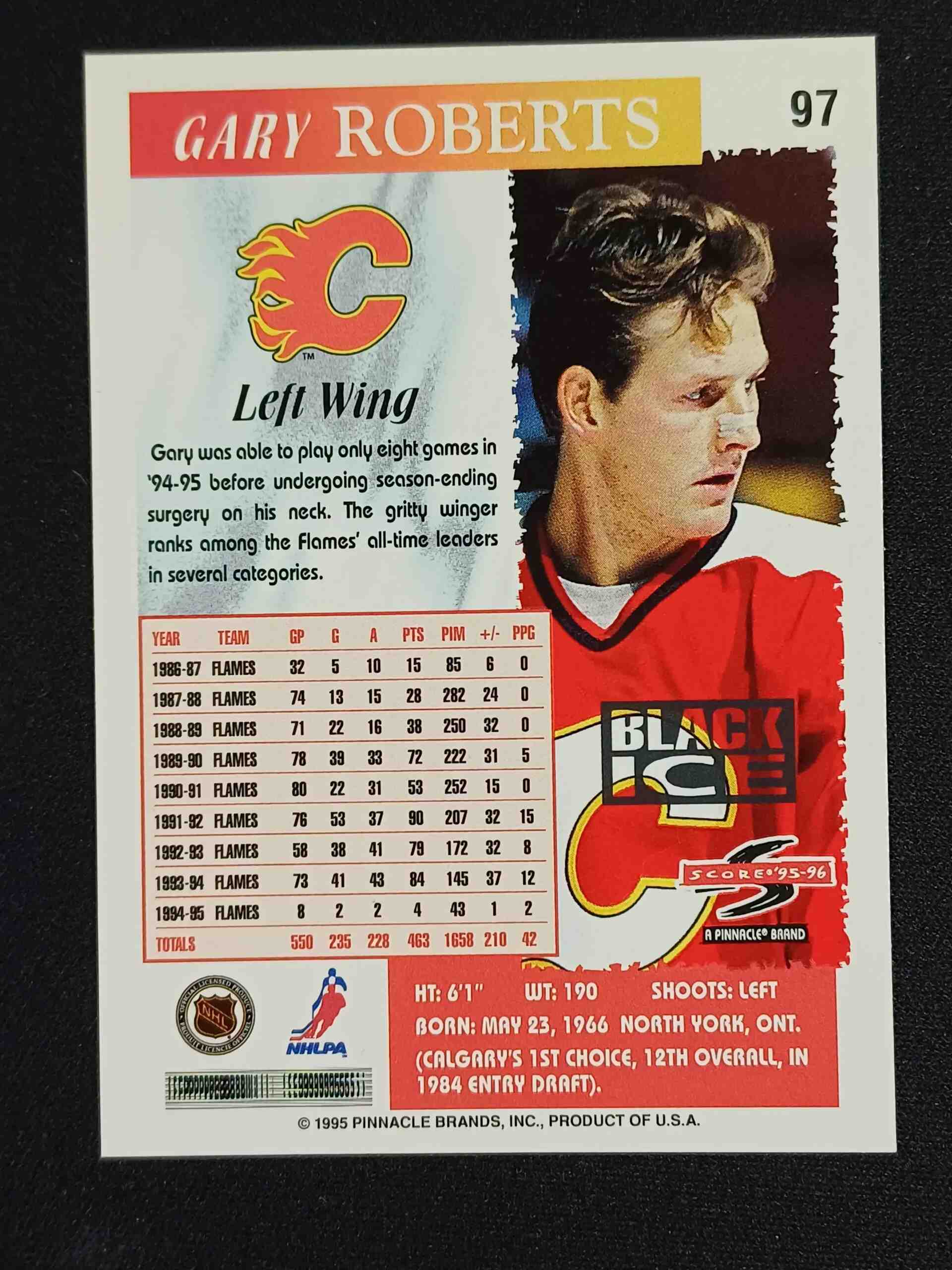 Sběratelská karta 1995/1996 Pinnacle Score Black Ice Artist Proof 97 Gary Roberts Paralel