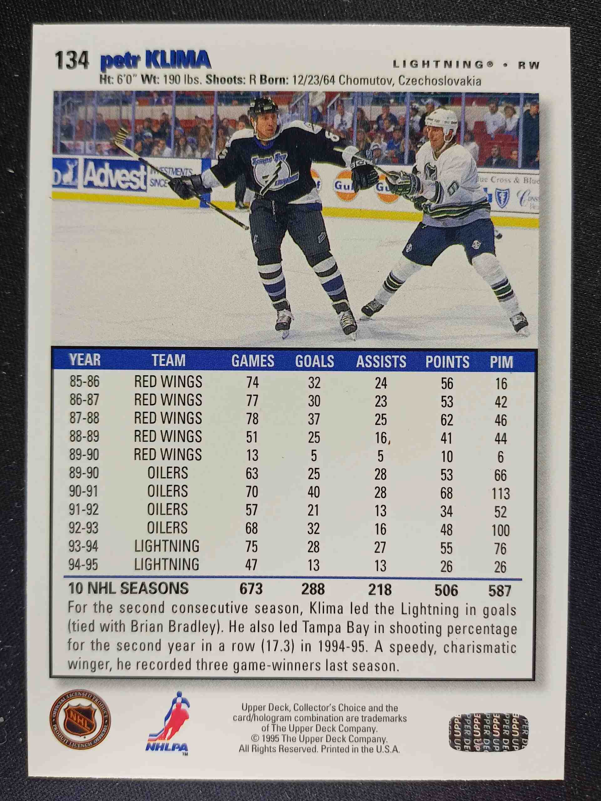 Sběratelská karta 1995/1996 Upper Deck Collectors Choice Base 134 Petr Klima