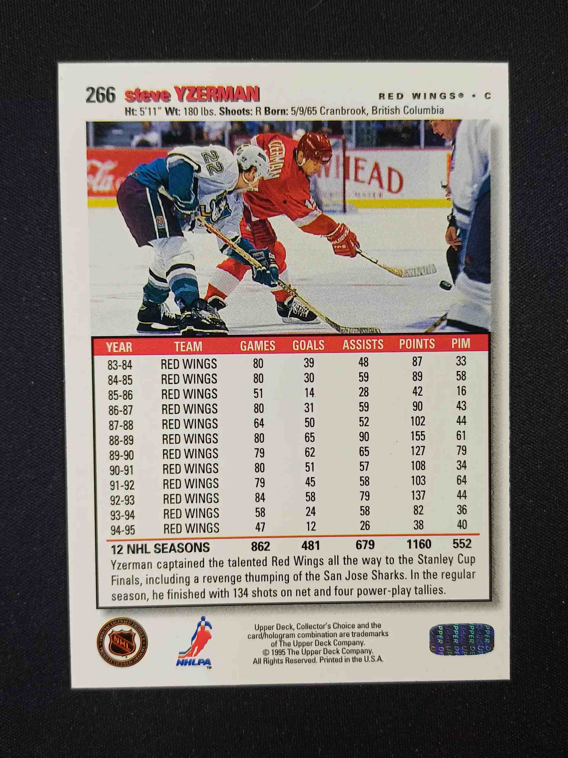 Sběratelská karta 1995/1996 Upper Deck Collectors Choice Base 266 Steve Yzerman