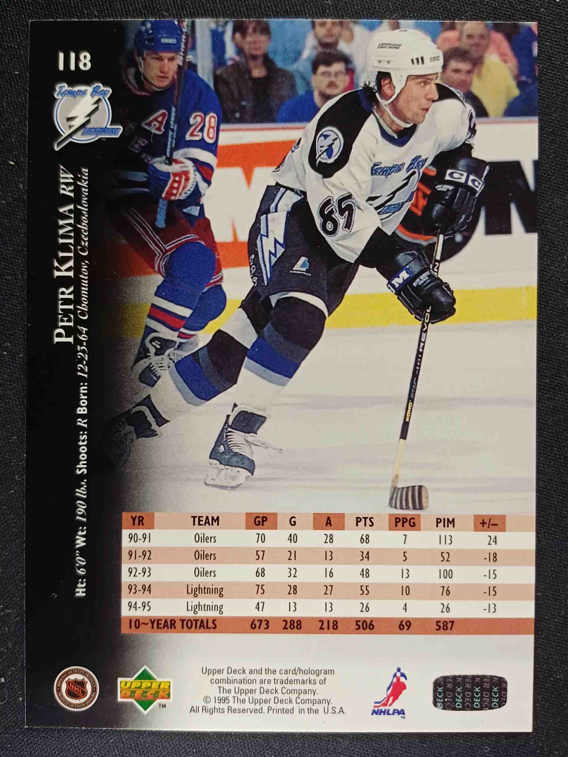 Sběratelská karta 1995/1996 Upper Deck Series 1 Base 118 Petr Klima