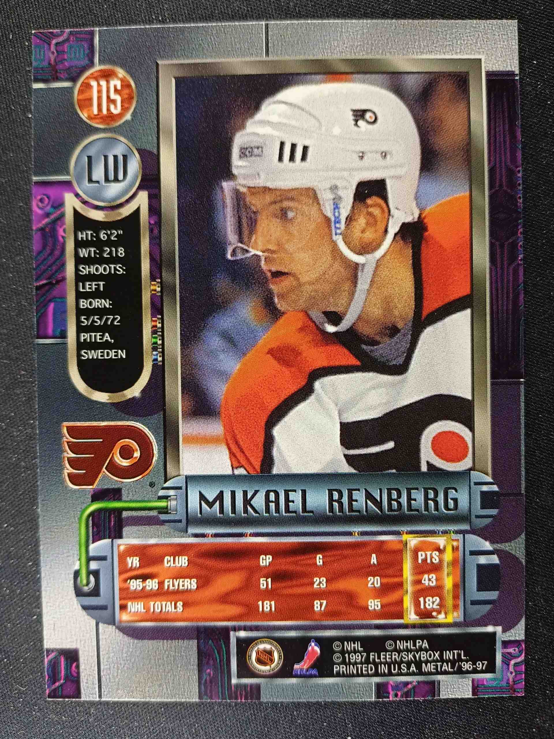 Sběratelská karta 1996/1997 Fleer Metal Universe Base 115 Mikael Renberg