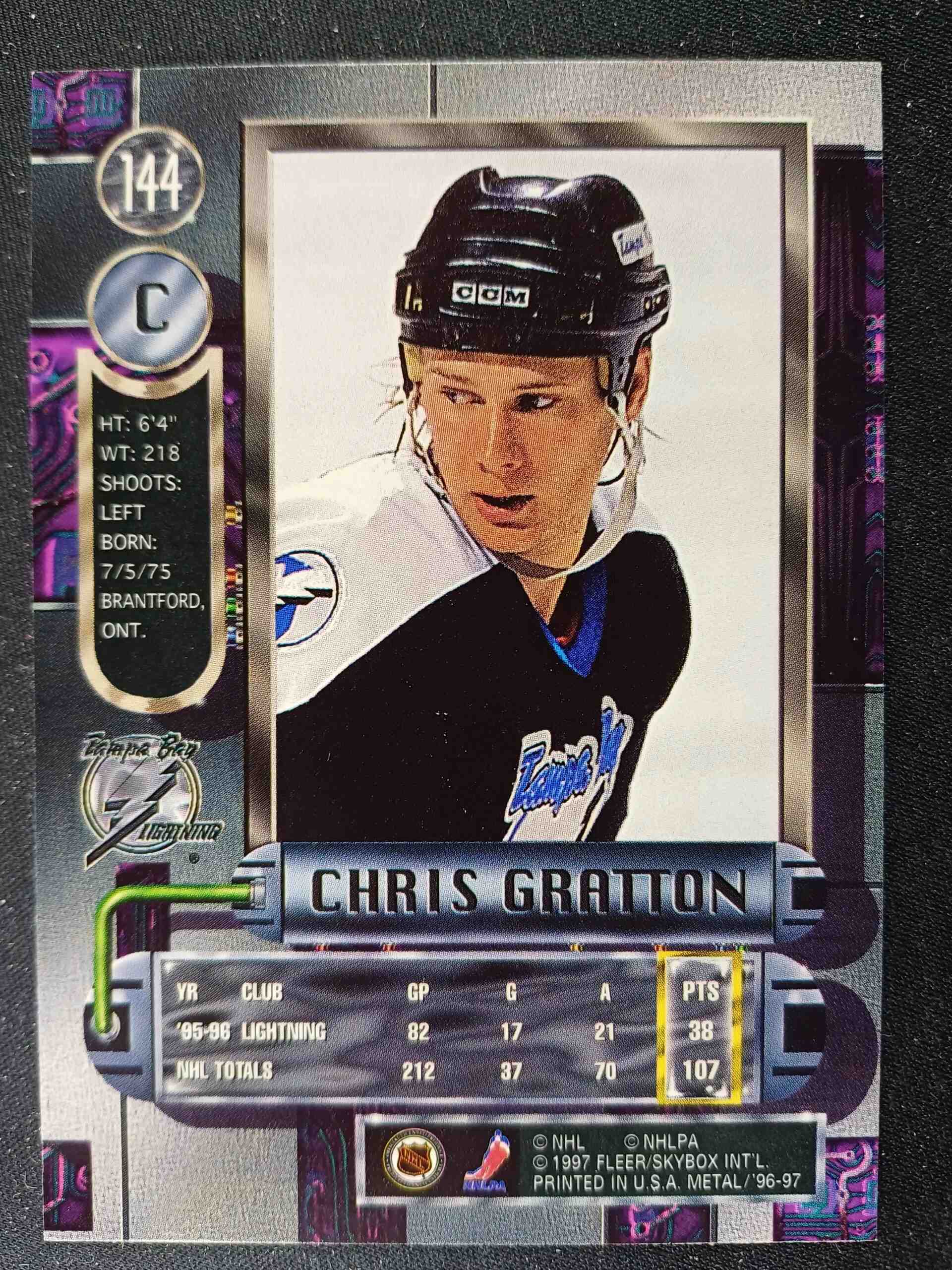 Sběratelská karta 1996/1997 Fleer Metal Universe Base 144 Chris Gratton
