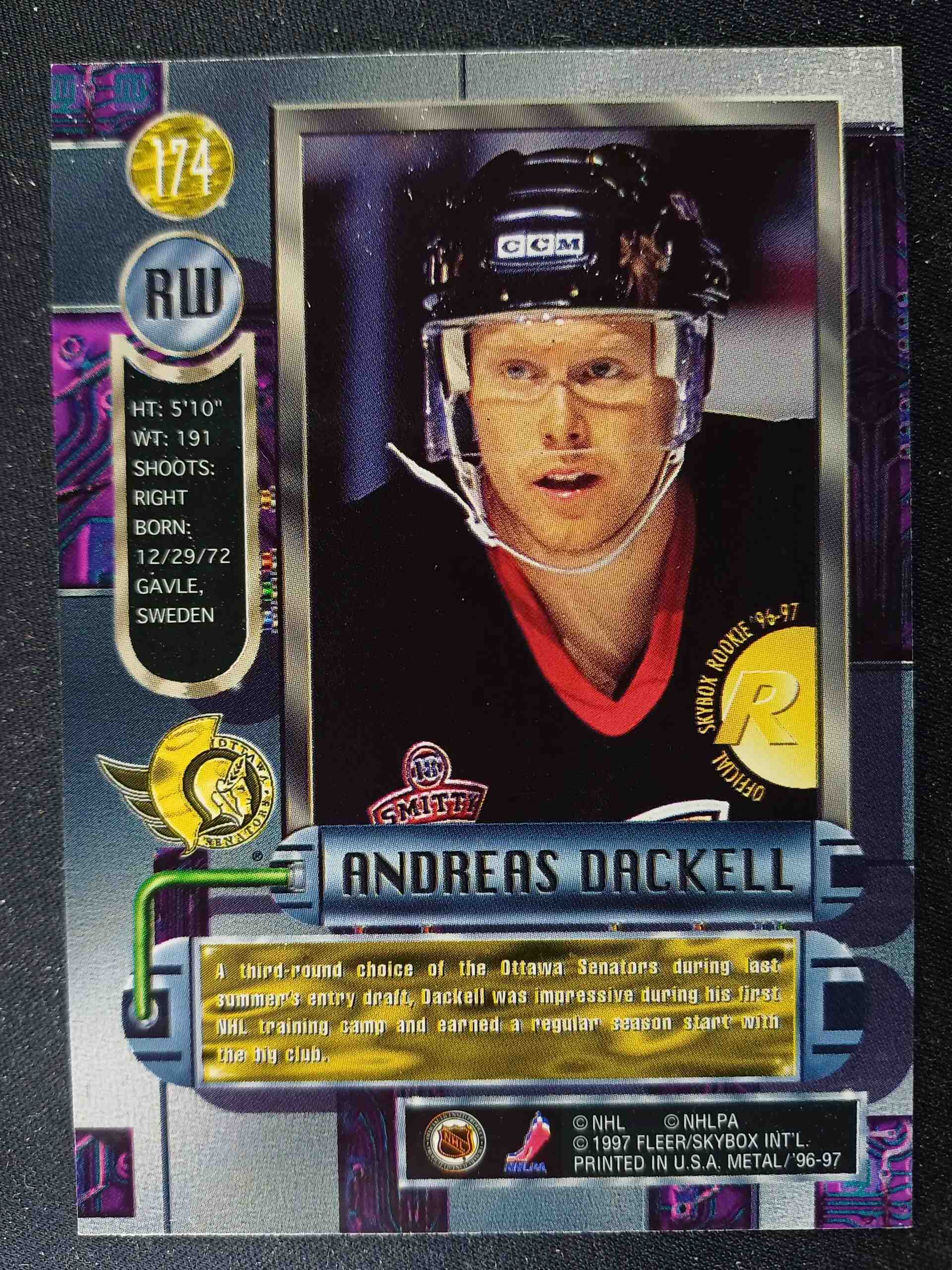 Sběratelská karta 1996/1997 Fleer Metal Universe Base 174 Andreas Dackell