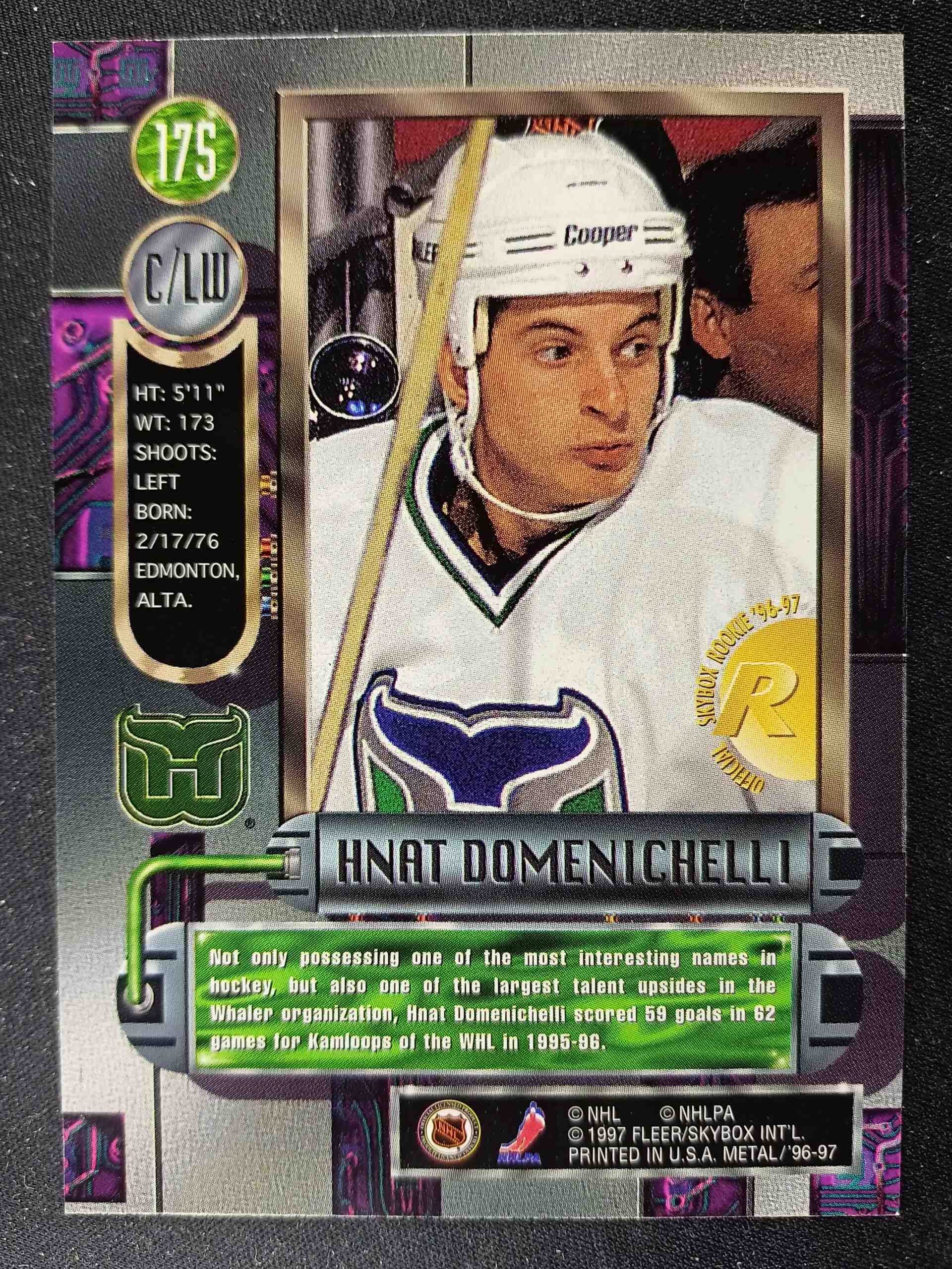 Sběratelská karta 1996/1997 Fleer Metal Universe Base 175 Hnat Domenichelli