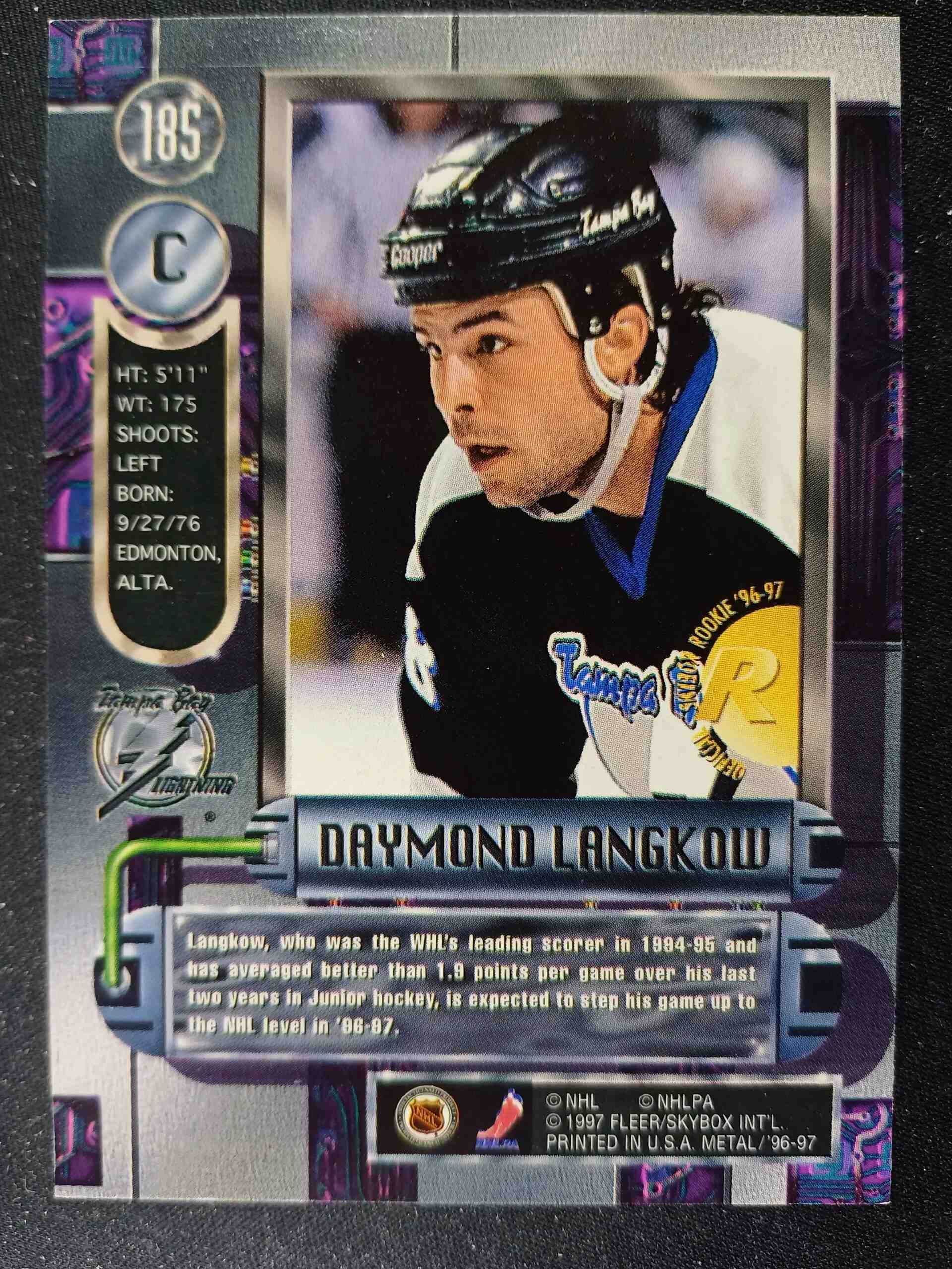 Sběratelská karta 1996/1997 Fleer Metal Universe Base 185 Daymond Langkow