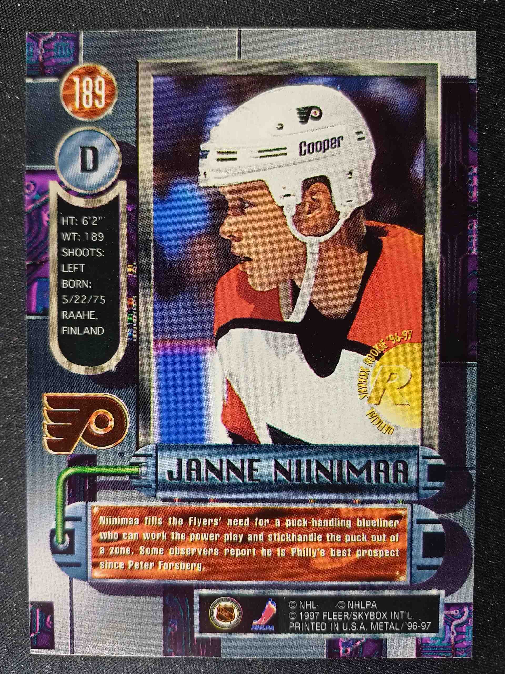 Sběratelská karta 1996/1997 Fleer Metal Universe Base 189 Janne Niinimaa