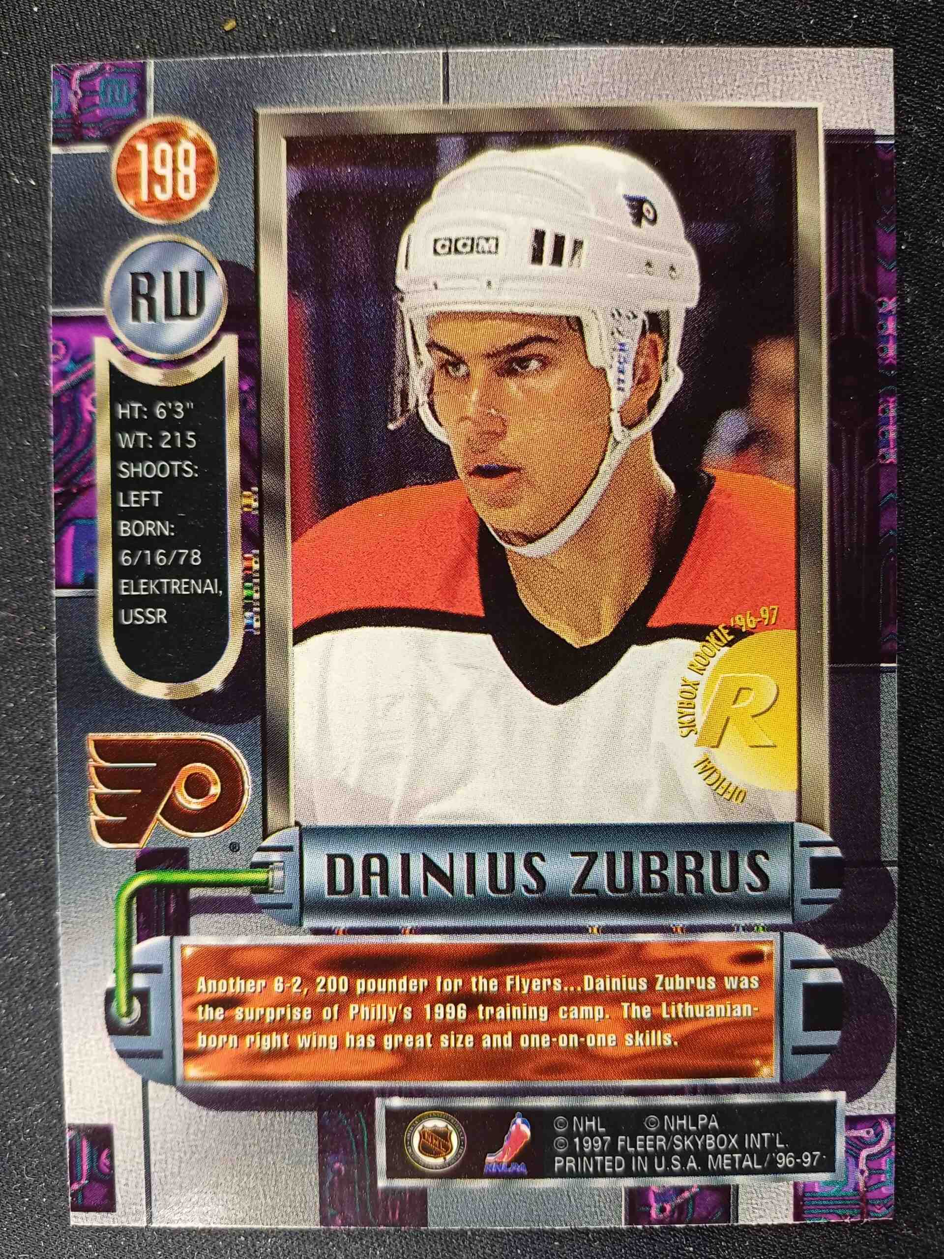 Sběratelská karta 1996/1997 Fleer Metal Universe Base 198 Dainius Zubrus