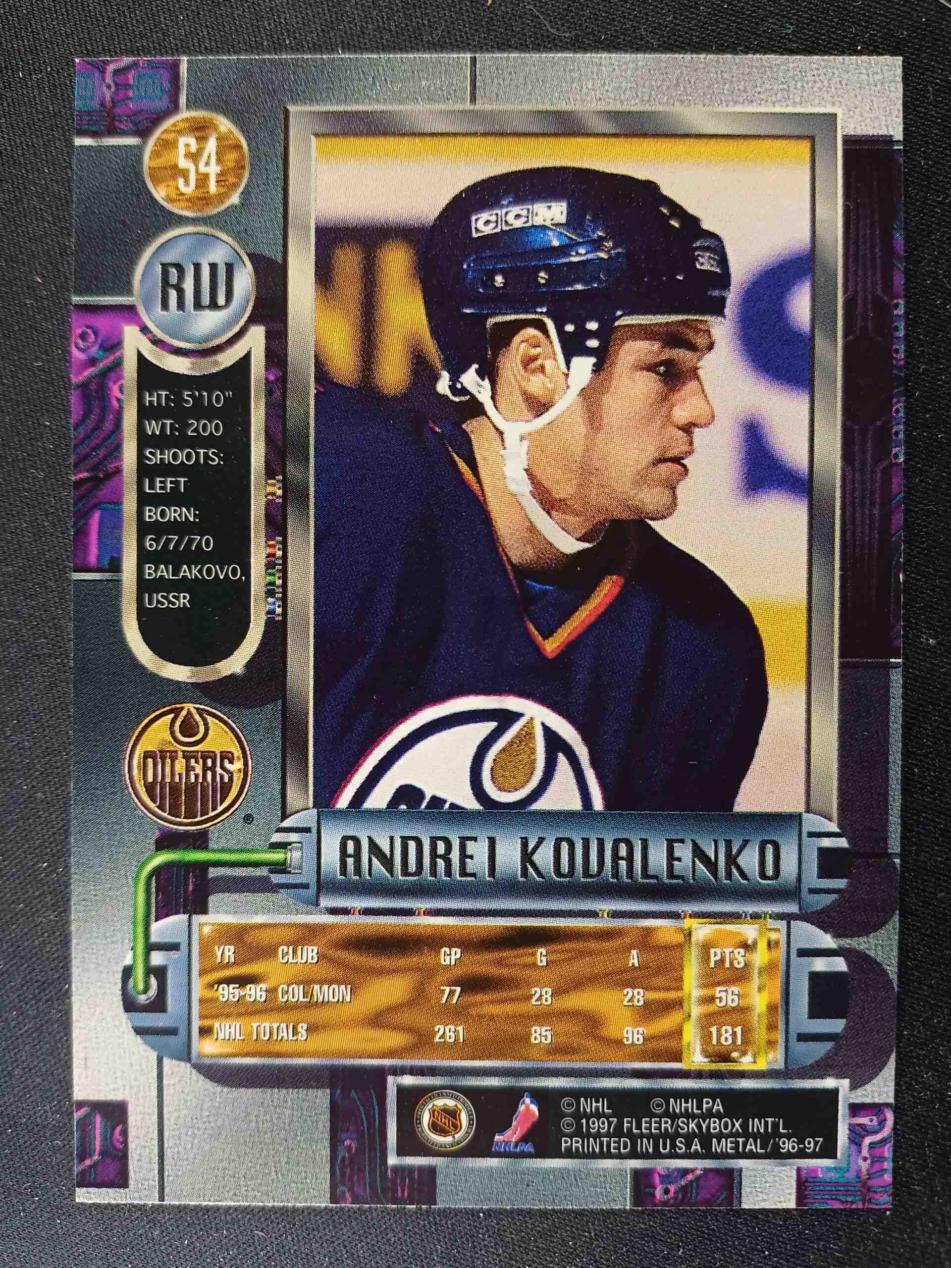 Sběratelská karta 1996/1997 Fleer Metal Universe Base 54 Andrei Kovalenko