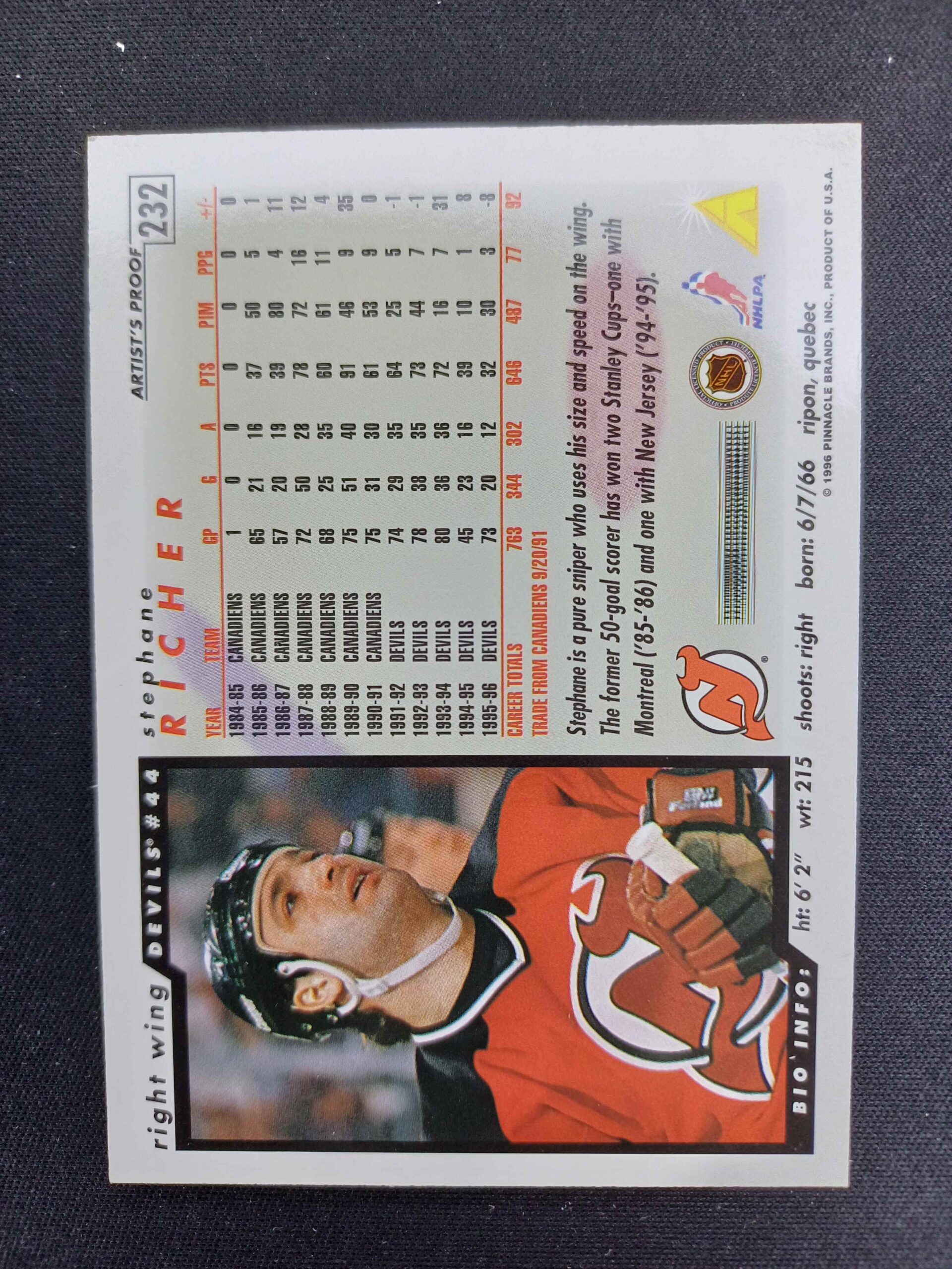 Sběratelská karta 1996/1997 Pinnacle Score Artist’s Proof 232 Stephane Richer Paralel