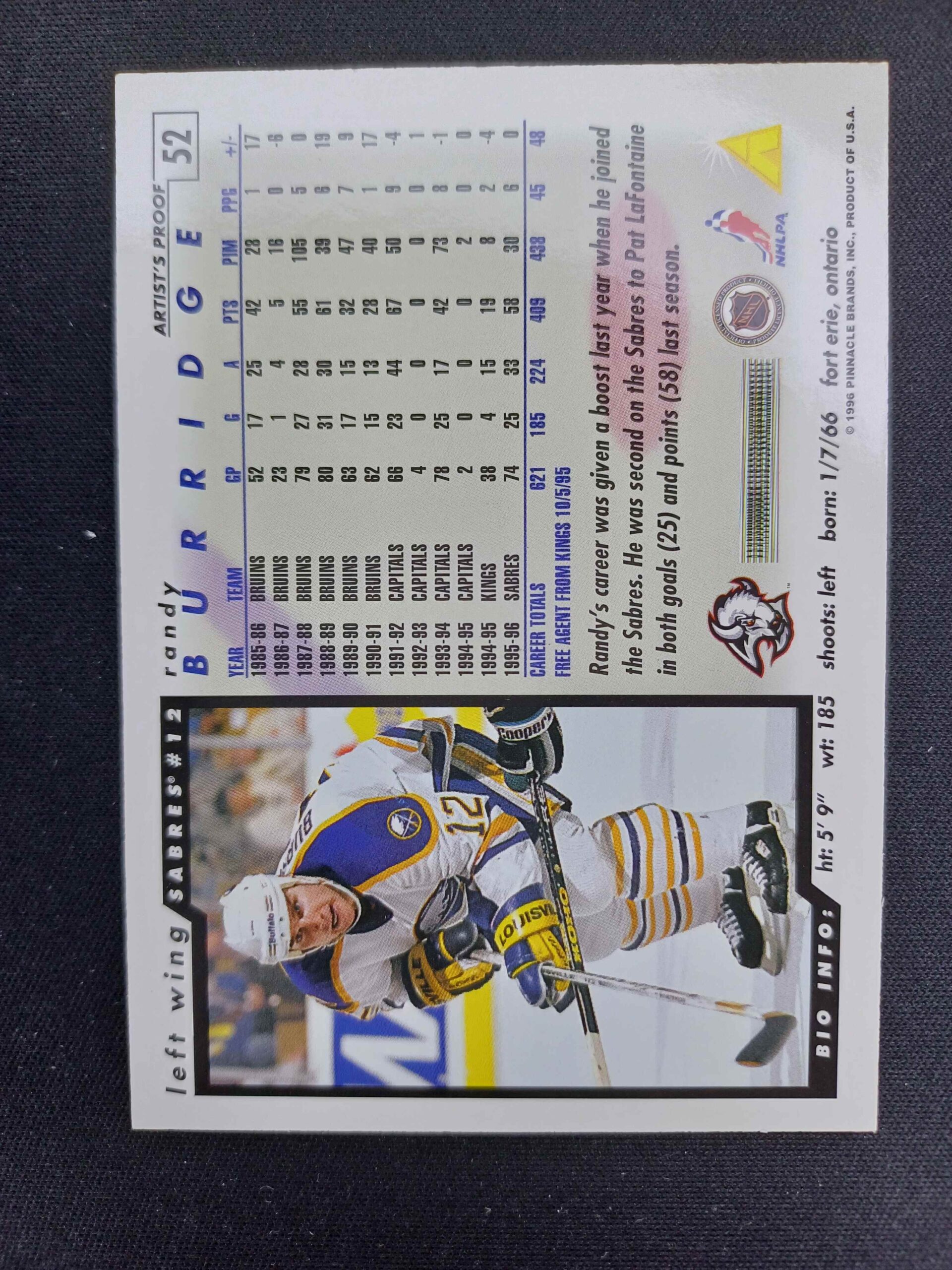 Sběratelská karta 1996/1997 Pinnacle Score Artist’s Proof 52 Randy Burridge Paralel