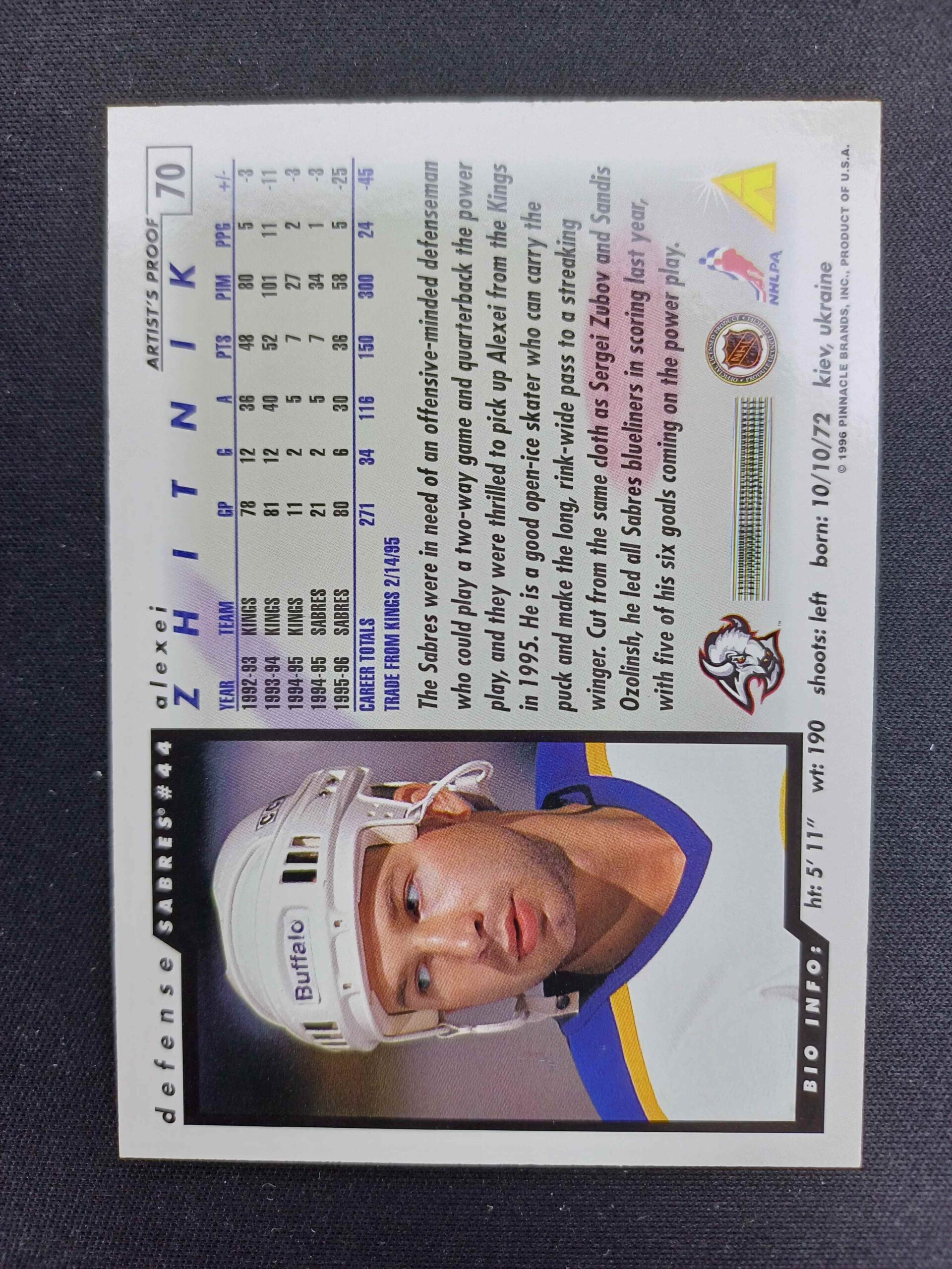 1996/1997 Pinnacle Score Artist’s Proof 70 Alexei Zhitnik Paralel