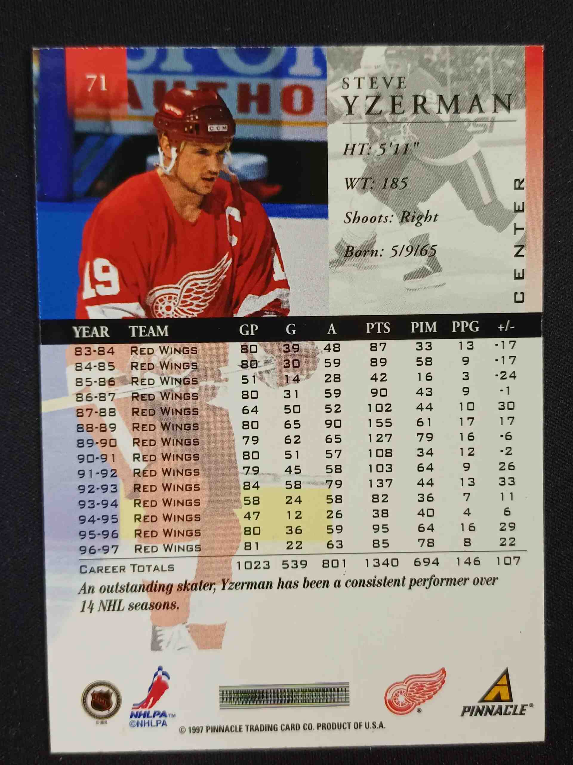 Sběratelská karta 1997/1998 Pinnacle Base 71 Steve Yzerman