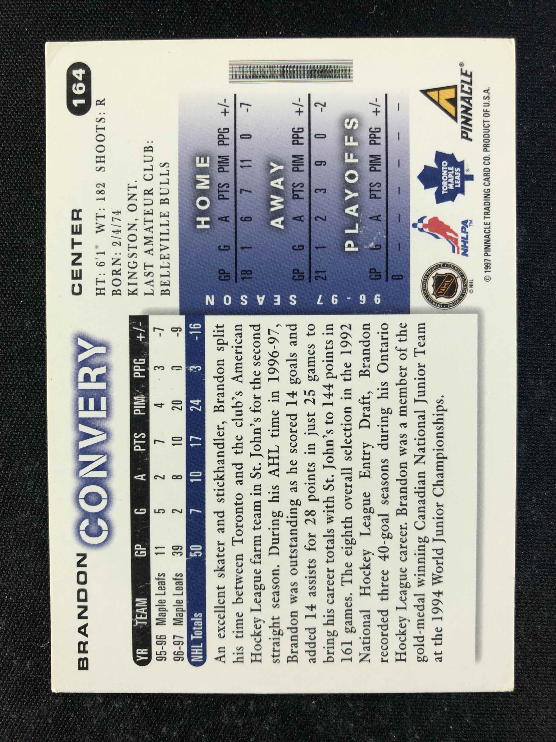 Sběratelská karta 1997/1998 Pinnacle Score Base 164 Brandon Convery