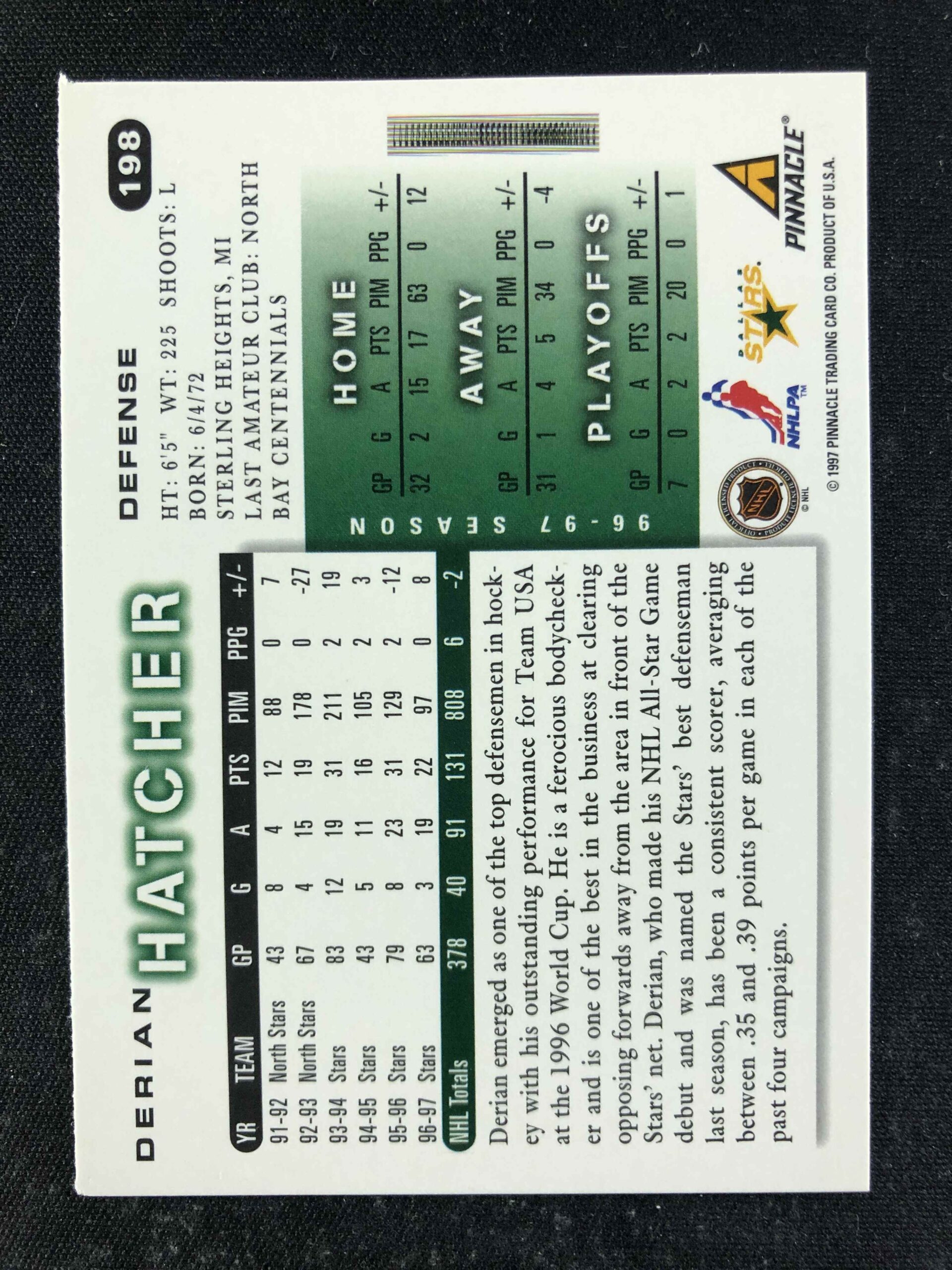 Sběratelská karta 1997/1998 Pinnacle Score Base 198 Derian Hatcher
