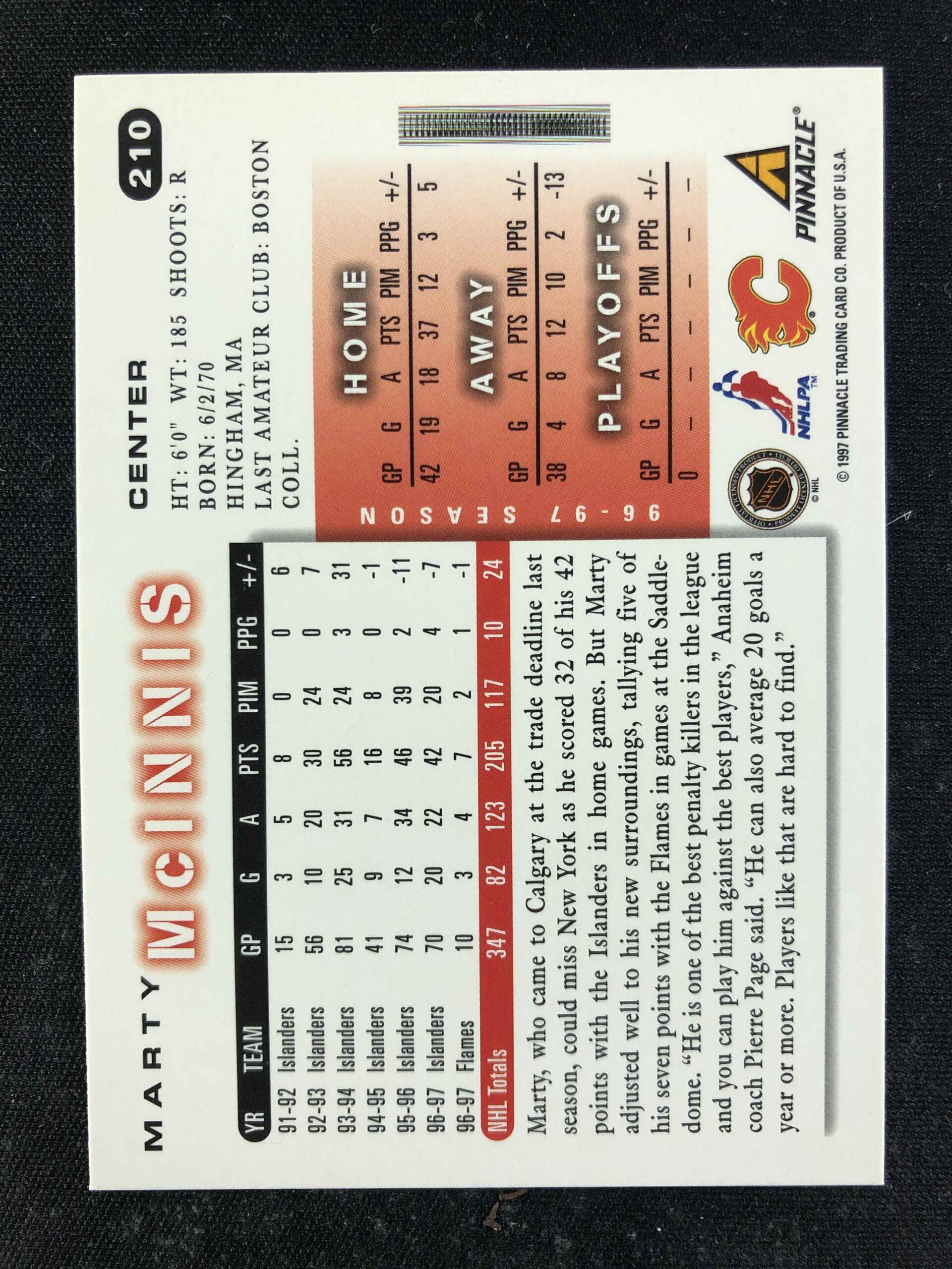 Sběratelská karta 1997/1998 Pinnacle Score Base 210 Marty McInnis