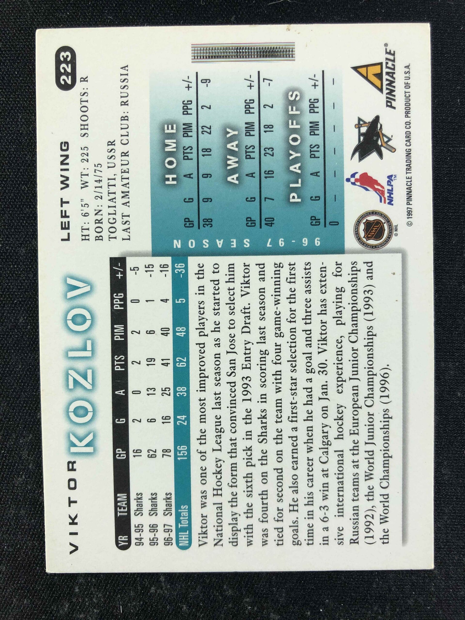 Sběratelská karta 1997/1998 Pinnacle Score Base 223 Viktor Kozlov