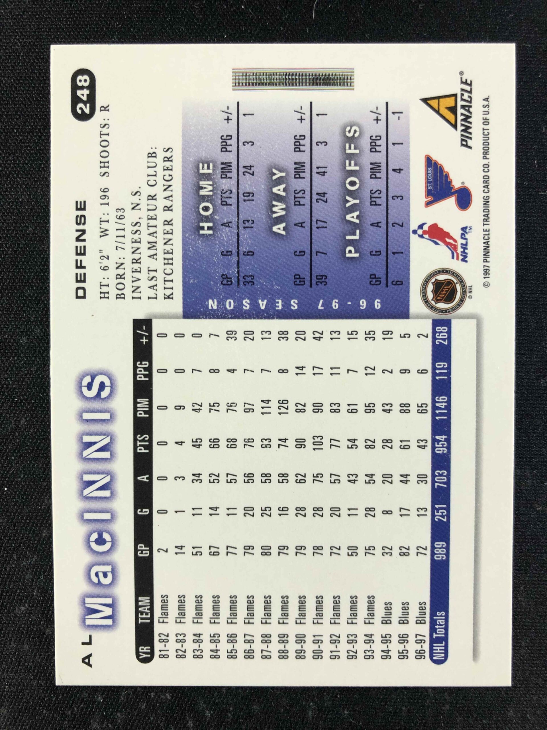 Sběratelská karta 1997/1998 Pinnacle Score Base 248 Al MacInnis