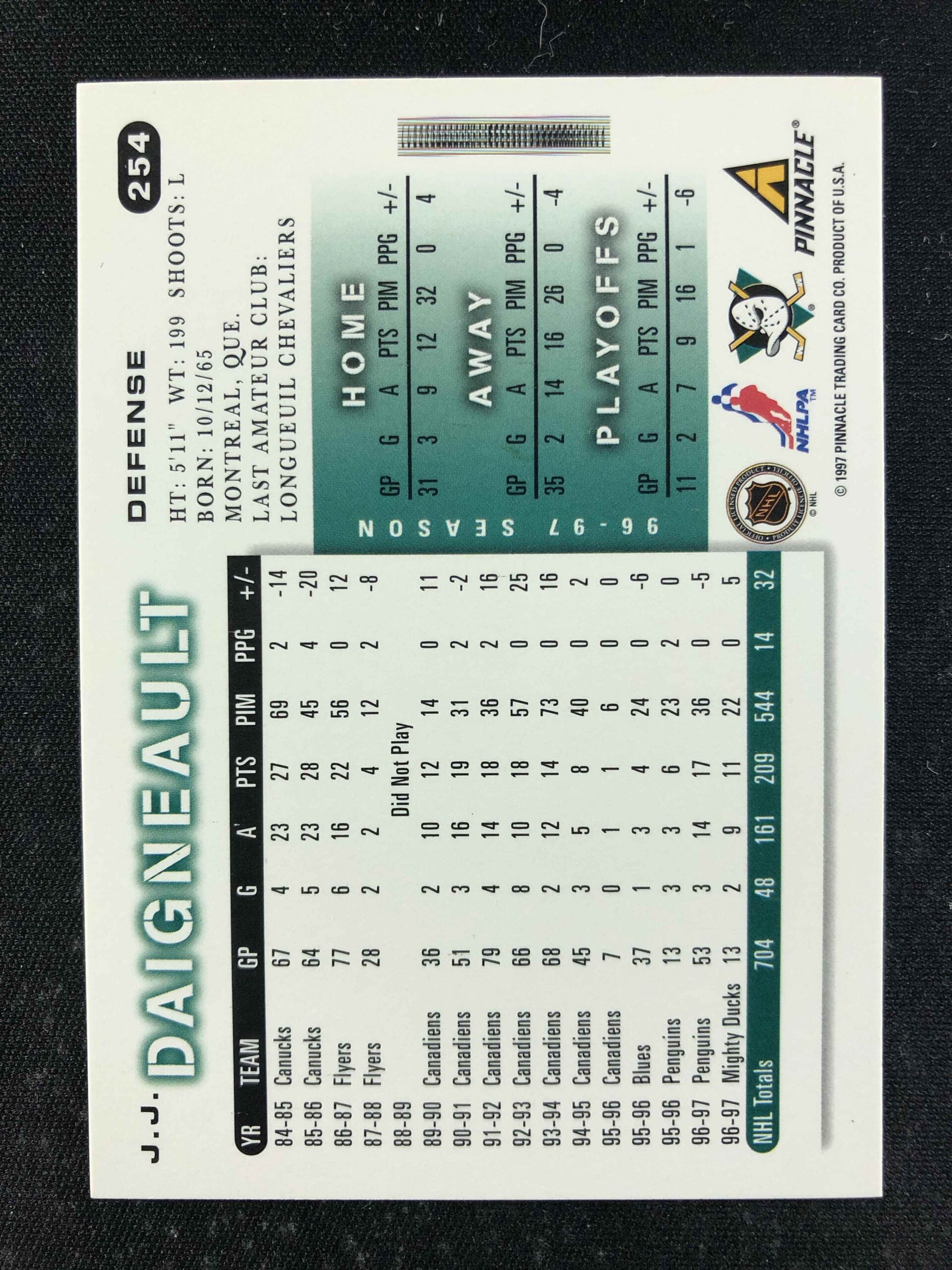Sběratelská karta 1997/1998 Pinnacle Score Base 254 J.J. Daigneault
